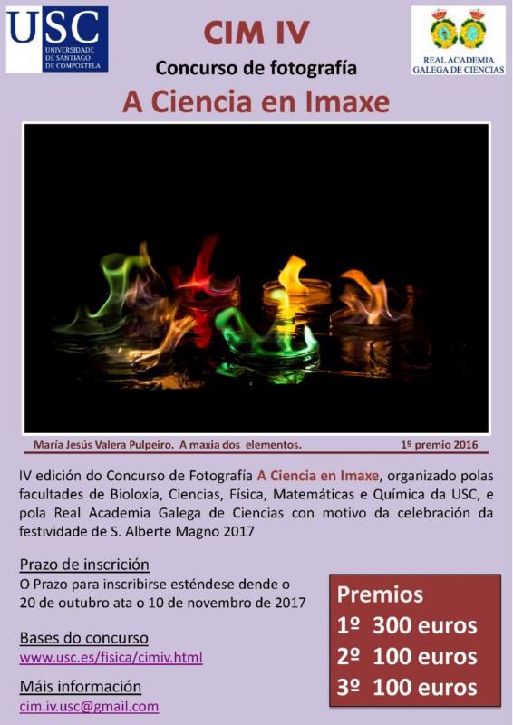 Este venres 20 abre o prazo de participación á cuarta edición do concurso de fotografía ‘A Ciencia en imaxe’ que organizan as facultades de Bioloxía, Ciencias, Física, Matemáticas e Química xunto coa Real Academia Galega de Ciencias con motivo da celebración da festividade de San Alberte Magno. O concurso está aberto a calquera persoa pertencente á comunidade universitaria da USC que poderá participar con calquera tema relacionado coas ciencias, a investigación e a divulgación científica. A data límite de presentación de traballos será o 10 de novembro.