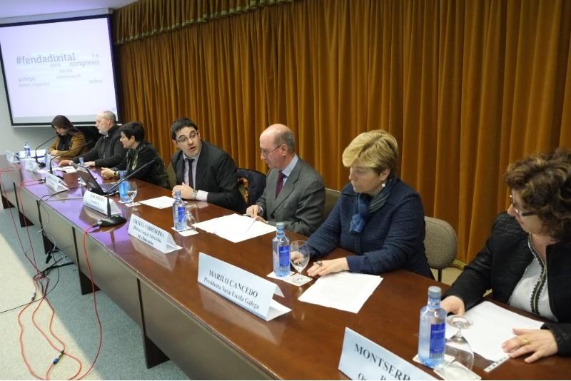 A xornada inaugural presidiuna o vicerreitor de Comunicación e Coordinación, Xosé Pereira. Interviñeron tamén a decana da Facultade, Carmen Fernández Morante; o director xeral de Educación, Formación Profesional e Innovación, Manuel Corredoira; o concelleiro de Educación de Santiago, Manuel Dios; a presidenta de Nova Escola Galega, Mariló Cancelo; Daniela Gonzalves en representación das universidades portuguesas participantes; e Montse Castro, en nome do comité organizador. A conferencia que abriu a quenda de intervencións estivo dedicada aos desafíos da inclusión na sociedade dixital e impartiuna Ángeles Parrilla, da Universidade de Vigo, e Tiberio Feliz da UNED.