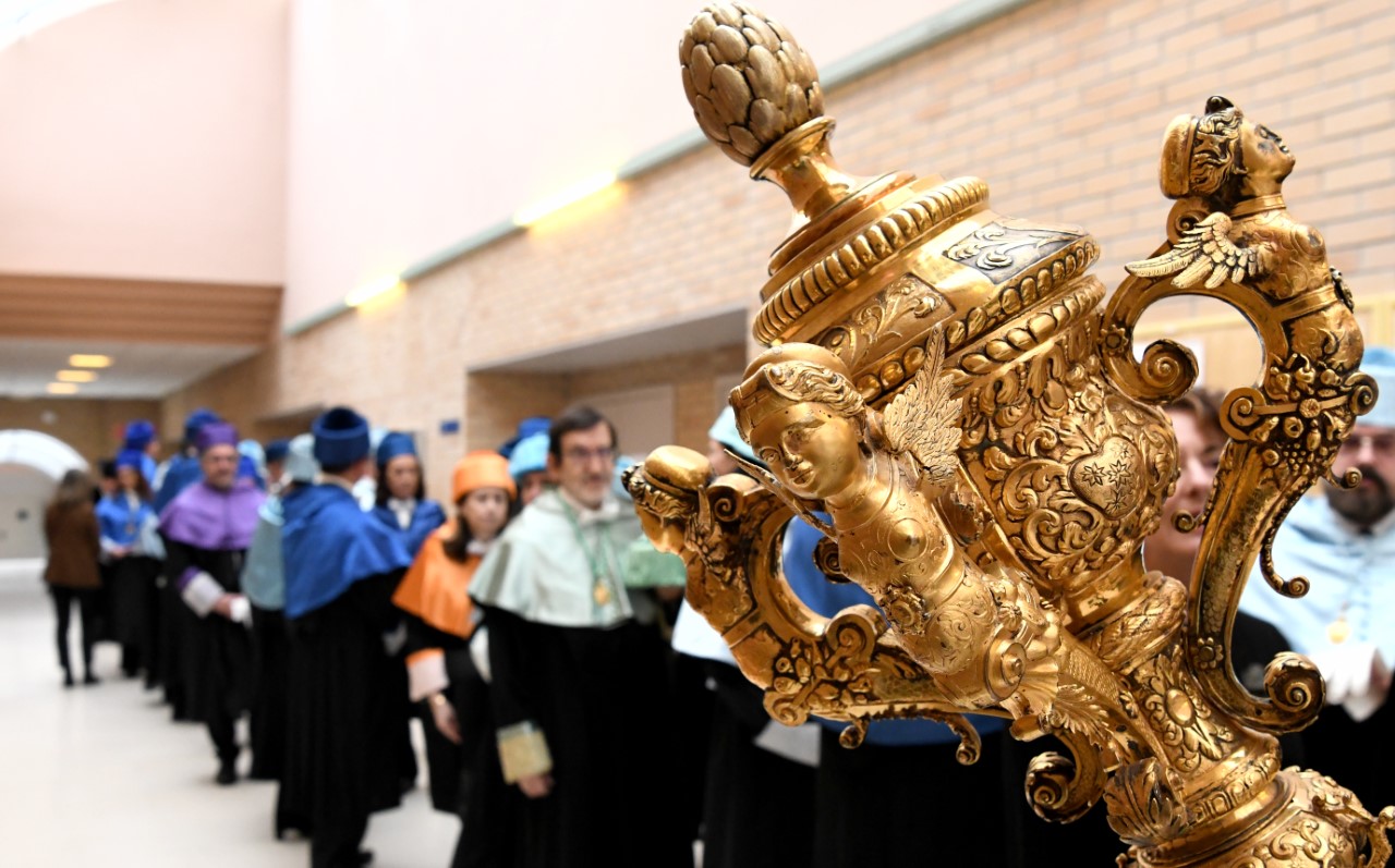 Comitiva académica previa ao acto de San Tomé, na Facultade de Humanidades. Foto: Santi Alvite