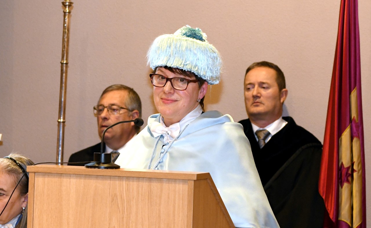 A catedrática da Área de Filoloxía Francesa da USC na Facultade de Humanidades, María Isabel González Rey, pronunciou a lección maxistral do acto académico conmemorativo da festividade de San Tomé, unha intervención na que, baixo o título ‘Novos estereotipos lingüísticos e redes sociais’, afondou na relación existente entre as convencións sociais, moldes ou estereotipos e a forma de comunicación, unha nova linguaxe simple e telegráfica que lle engade unha gran potencia comunicativa, pero que ao mesmo tempo dificulta a precisión e os matices que conforman as ideas e os conceptos.