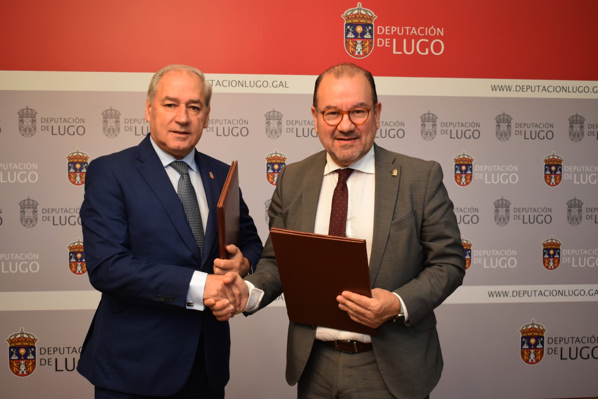 O reitor da USC, Antonio López, e o presidente da Deputación Provincial de Lugo, José Tomé Roca, asinaron este martes no lugués Pazo de San Marcos un convenio de colaboración a través do que a institución provincial achega 370.500 euros á USC para “afianzar o carácter universitario da provincia e seguir a potenciar a excelencia académica do Campus de Lugo”.