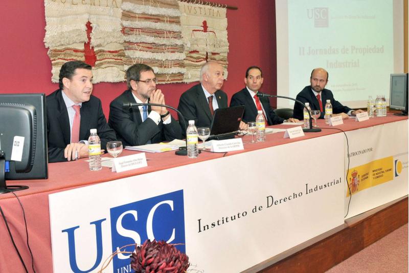 As II Xornadas sobre Propiedade Industrial celébranse este xoves 4 na Facultade de Dereito organizadas polo Instituto de Dereito Industrial da USC (IDIUS) co apoio da Oficina Española de Patentes e Marcas (OEPM). O reitor Juan Casares presidiu a inauguración no Salón de Graos do centro nun acto no que o acompañaron o director da OEPM, Alberto Casado; o decano da Facultade de Dereito, Luis Míguez Macho; o director do IDIUS, Ángel Fernández-Albor; e o codirector das xornadas, Ángel García Vidal. Esta xornada científica e de divulgación reúne a un destacado grupo de expertos nacionais e internacionais procedentes das universidades de Pais Vasco, Oviedo, Zaragoza, Carlos III de Madrid, da propia USC así como do Instituto Max-Plank de Múnic. A dirección do encontro recaeu nesta ocasión nos profesores Ángel García Vidal, María del Mar Maroño e Javier Framiñán. IDIUS O IDIUS é un centro propio da USC dedicado á investigación da competencia económica, a propiedade industrial e a propiedade intelectual. Aínda que os investigadores deste centro proceden maioritariamente da USC, tamén o integran outros procedentes das universidades de Vigo, A Coruña, Complutense de Madrid ou Alcalá de Henares entre outras.