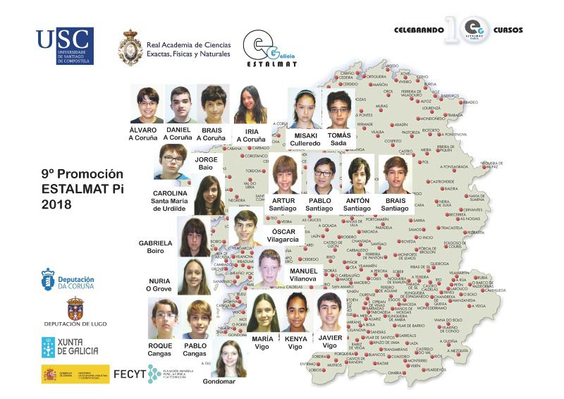 Estalmat PI Seleccionados polas súas aptitudes matemáticas avanzadas, os e as integrantes da promoción de Estalmat PI asistiron en doce sesións ás actividades de proxecto adaptadas ao desenvolvemento do seu talento logo de xa ter participado nos dous cursos do programa Estalmat. Estas actividades impártense as mañás dos sábados na Facultade de Matemáticas por un equipo docente de máis de 50 profesores de recoñecida competencia e especialmente formados para este cometido.