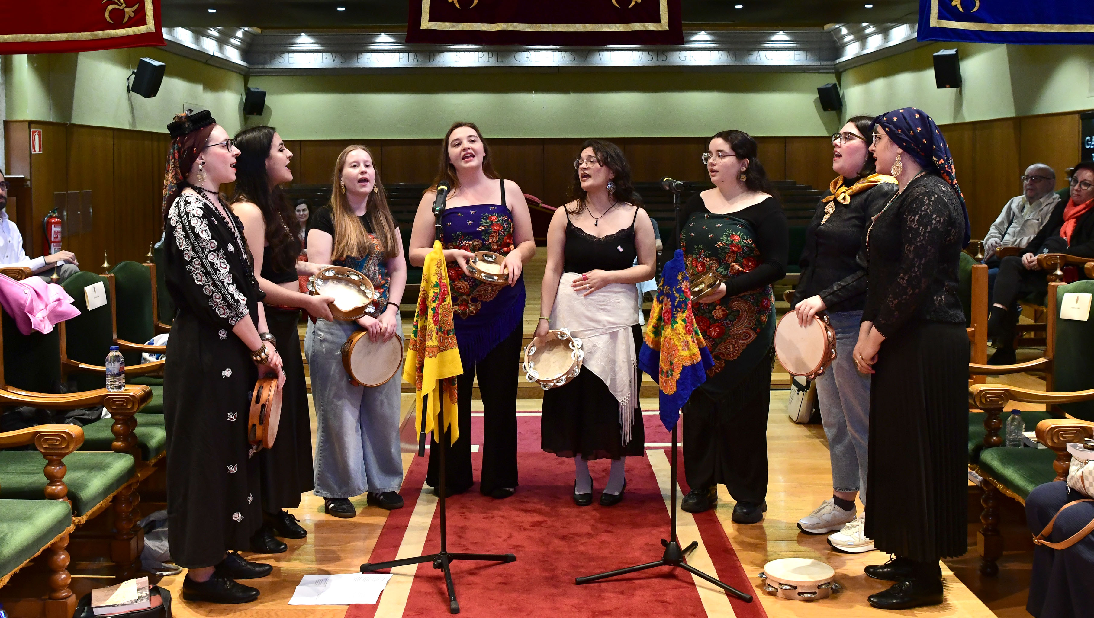 O grupo Ferreñas Ceibes, composto por estudantado do grao de Filoloxía Galega da USC, interpretou no acto pezas da lírica popular galega. FOTO: Santi Alvite