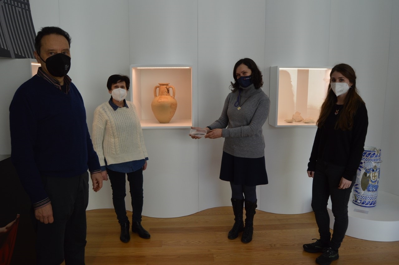 De esquerda a dereita, Varela Zapata, Dopico Caínzos e dúas restauradoras de Viladonga, diante da ánfora recuperada