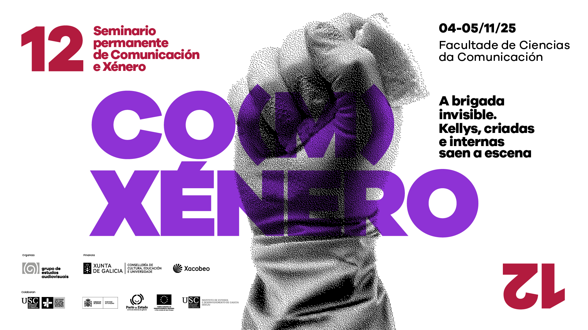 Baixo o título ‘A brigada invisible. Kellys, criadas e internas saen a escena’, o programa do 12 CO(M)XÉNERO aborda unha máis das múltiples violencias que as mulleres sofren “ao ser asociadas ao traballo mal remunerado dos coidados e que convén analizar desde as súas representacións e ocultamentos”, explican dende o grupo de Estudos Audiovisuais da USC. O Seminario Permanente de Comunicación e Xénero da Facultade de Ciencias da Comunicación botará a andar o 4 de novembro, ás 16.30 horas, coa intervención de Vania Arana e Georgina Cisquella. O foro estenderase ata o día 5 e a inscrición pode formalizarse de balde, ata o 31 de outubro, a través dun formulario en liña.