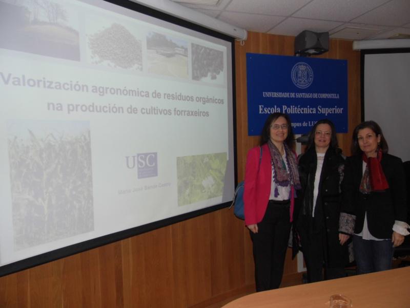 Esta tese de doutoramento, dirixida por Elvira López Mosquera e María Jesús Sainz Osés, profesoras do Departamento de Produción Vexetal da USC na EPS, é o resultado das pescudas e estudos desenvolvidos durante catro anos por María José Bande Castro nunha pradeira e outros tres anos nunha rotación de raigrás italiano-millo forraxeiro. A aplicación anual de 4500 kg ha -1 de esterco de polo deshidratado ou unha dose superior nun cultivo de pradeira ou nunha rotación raigrás italiano-millo forraxeiro provoca ademais un efecto encalante claro no solo, o que se reflicte sobre todo na redución da porcentaxe de saturación de aluminio, conclúe a investigación, na que tamén se proba que a aplicación nunha pradeira de xurro de vacún, lodo de industria láctea e esterco deshidratado de polo durante un período de catro anos, non modificou o contido en metais do solo e mantén a súa concentración por debaixo dos límites máximos permitidos pola lexislación vixente. Tribunal e cualificación da tese A profesora do Departamento de Produción Vexetal da USC Rosa Mosquera Losada presidiu o tribunal encargado de avaliar a tese de doutoramento presentada por María José Bande Castro e que mereceu a máxima cualificación de sobresaínte cum laude. Socorro Seoane Labandeira, profesora do Departamento de Edafoloxía e Química Agrícola da USC; Antonia García Ciudad, do CSIC Salamanca, María José Poblaciones Suárez-Bárcena, da Universidade de Estremadura, e María Isabel Pomar García, do Centro de Investigacións Agrarias de Mabegondo, completan a relación de membros que conformaron o tribunal desta tese.