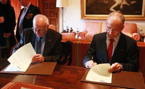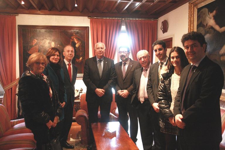 A Facultade de Medicina e Odontoloxía é un dos centros de toda España aos que a empresa Dentsplay proporciona de xeito gratuíto o material necesario para o seu uso nas prácticas clínicas de Odontoloxía durante todo un ano. Para o presente curso, o alumnado de 4º e 5º de Odontoloxía e do máster de Endodoncia Avanzada contará con reposicións do composite Ceram.X, para a administración de empastes. O desenvolvemento desta liña de colaboración entre a USC e Dentsplay España quedou formalizada nun convenio específico que asinaron o reitor Juan Casares e o director xerente da empresa, Agustín Sánchez Durán, no Colexio de San Xerome. Pola súa banda, a USC proporcionará a Dentsplay a súa valoración do produto a través de 150 enquisas que se realizarán de xeito mensual, semestral e anual. Ademais, subministrará un estudo clínico sobre Ceram.X realizado polo alumnado de 4º e 5º curso para a súa publicación nun revista do ámbito odontolóxico. O profesor Benjamín Martín Biedma será o coordinador da utilización do material e integrará, xunto a Carmen Sermeño Cardona en representación de Dentsplay, a comisión de seguimento deste convenio. De esquerda á dereita: Purificación Varela, Inmaculada Tomas, Agustín Sánchez, Juan Casares, Juan Gestal, José González Bahillo, José Bahillo, Irene Tarazon e Benjamín Martín. Foto: Servimav-USC