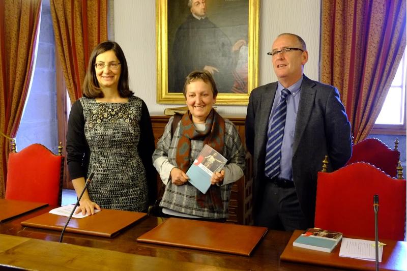 A catedrática de Filosofía Política María Xosé Agra, xunto coa vicerreitora de Estudantes, Cultura e Responsabilidade Social, Dolores Álvarez Pérez, e o director do Servizo de de Publicacións, Juan Blanco Valdés, presentaron o libro este martes 22 no Salón Reitoral do Colexio de San Xerome. O fío condutor da obra é a xustiza democrática e a igualdade, tomando como punto de partida a lección de Esquilo. Neste senso, María Xosé Agra considera que as achegas da filosofía feminista, das teóricas da xustiza constitúen un lugar privilexiado, nin exclusivo nin excluínte, para comprender a complexidade e os dilemas dunha política democrática e dunha sociedade máis xusta.