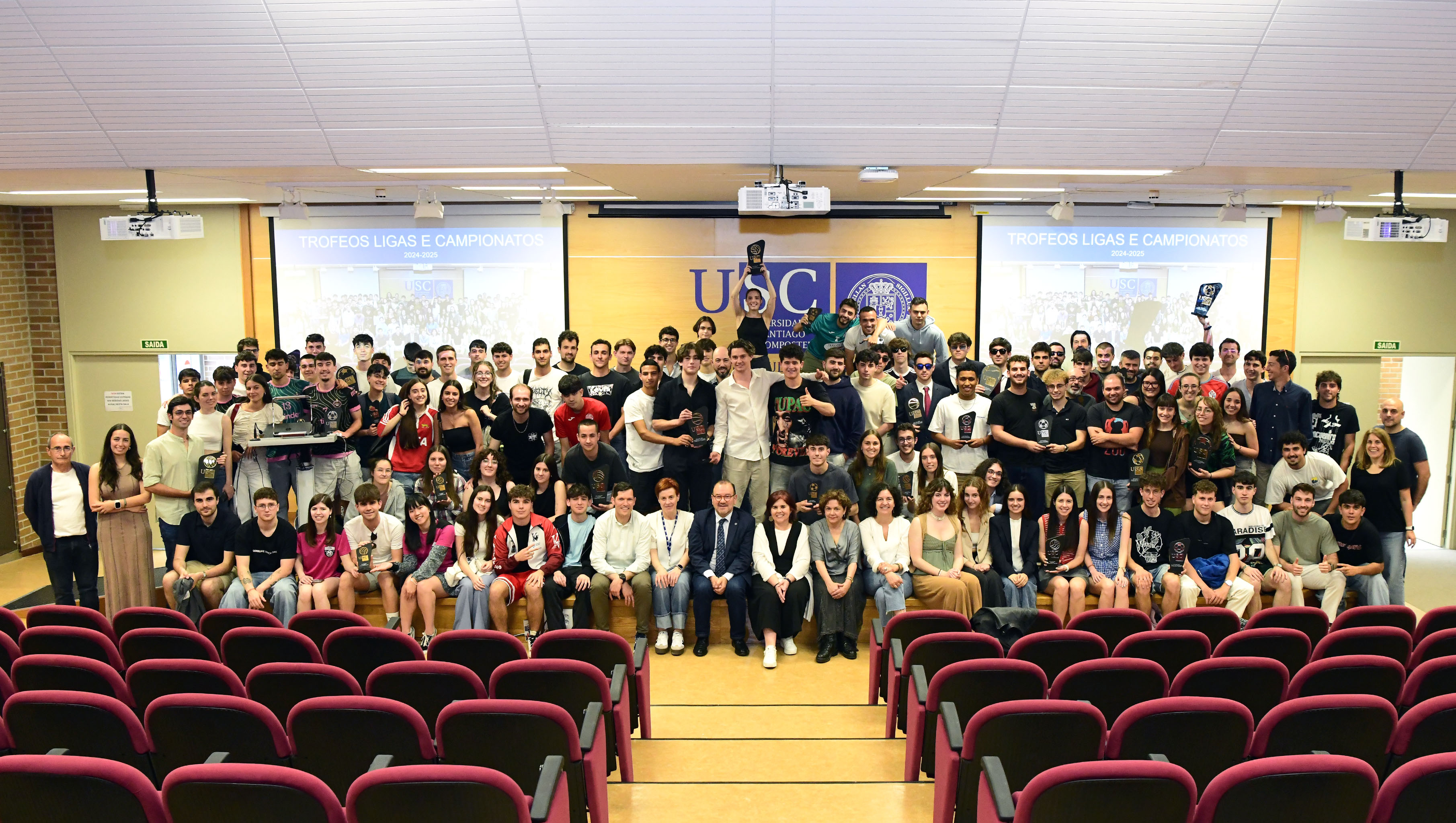 A USC recoñeceu este martes 29 as persoas campioas das ligas universitarias, torneo de copa e campionatos da Universidade de Santiago de Compostela. Nun acto presidido polo reitor Antonio López Díaz, fíxose entrega dos galardóns correspondentes ás ligas de baloncesto, fútbol sala, fútbol 7, voleibol mixto, equipos campións de copa, así como dos campionatos de pádel, pickleball, e xogos atléticos.