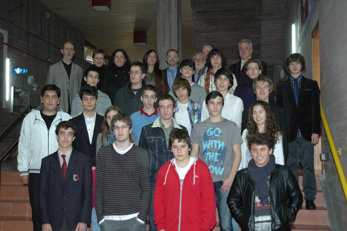 A entrega de premios da Olimpíada Matemática Galega 2011-12 celebrouse este mércores 18 na Facultade de Matemáticas nun acto que presidiu o vicerreitor de Investigación e Innovación, Francisco González García, e que contou coa presenza do conselleiro de Cultura, Educación e Ordenación Univeristaria, Xesús Vázquez; do reitor da Universidade da Coruña, Xosé Luis Armesto; da decana da Facultade de Matemáticas, María Victoria Otero; e do profesor da USC e coordinador da Olimpíada, Felipe Gago. Na Olimpíada Matemática Galega, fase autonómica da española, concedéronse tres primeiros premios, tres segundos, tres terceiros e once mencións de honra. Os primeiros formaron o Equipo Olímpico Galego de Matemáticas, que acaba de competir na fase nacional celebrada en Santander e na que o galego Óscar Rivero Salgado, do IES Cidade de Antioquía de Xinzo de Limia, se proclamou vencedor absoluto. Nese torneo Gonzalo Cao Labora, do IES Eusebio da Guarda da Coruña, obtivo unha medalla de bronce. Óscar Rivero participará representando a España na 53 Olimpíada Matemática Internacional que se disputará en xullo en Arxentina así como na XXVII Olimpíada Iberoamericana de setembro en Bolivia.