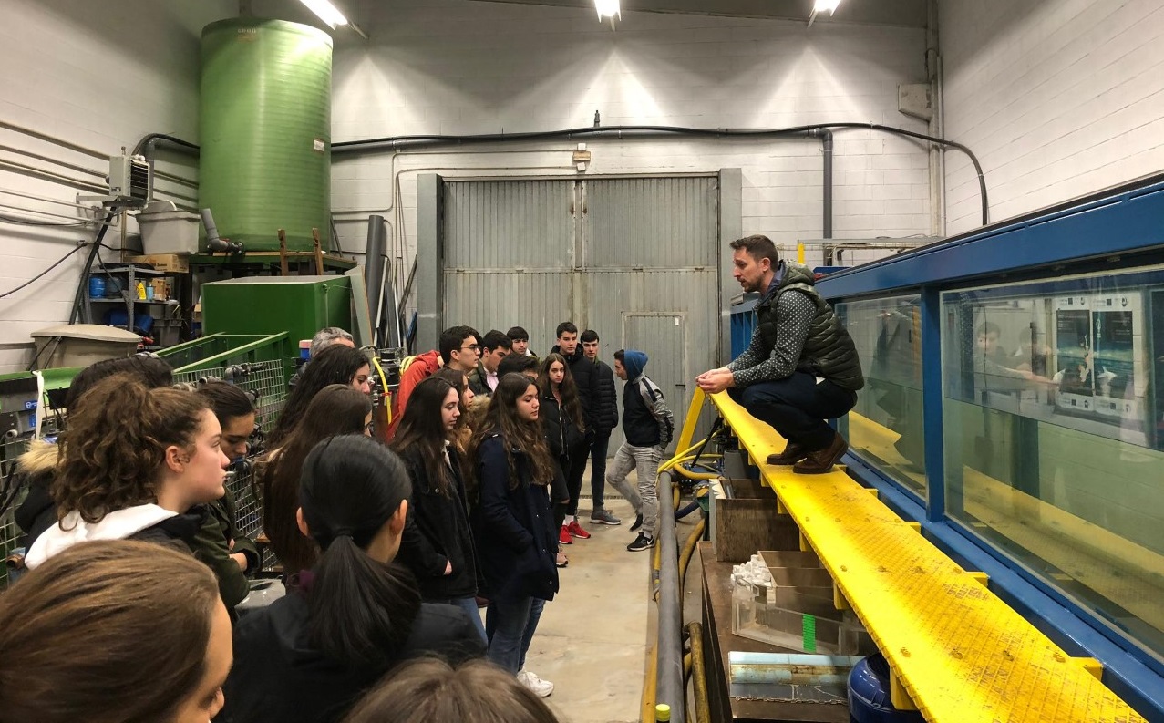 Os estudantes preuniversitarios tiveron deste xeito a ocasión de coñecer os diversos laboratorios da EPS de Enxeñaría. Os investigadores mozos Iván López e Marcos Arza guiaron unha presentación do canal de ondas e correntes, ao tempo que fixeron unha demostración de modelización de dispositivos convertedores de enerxías mariñas e impresión 3D.
