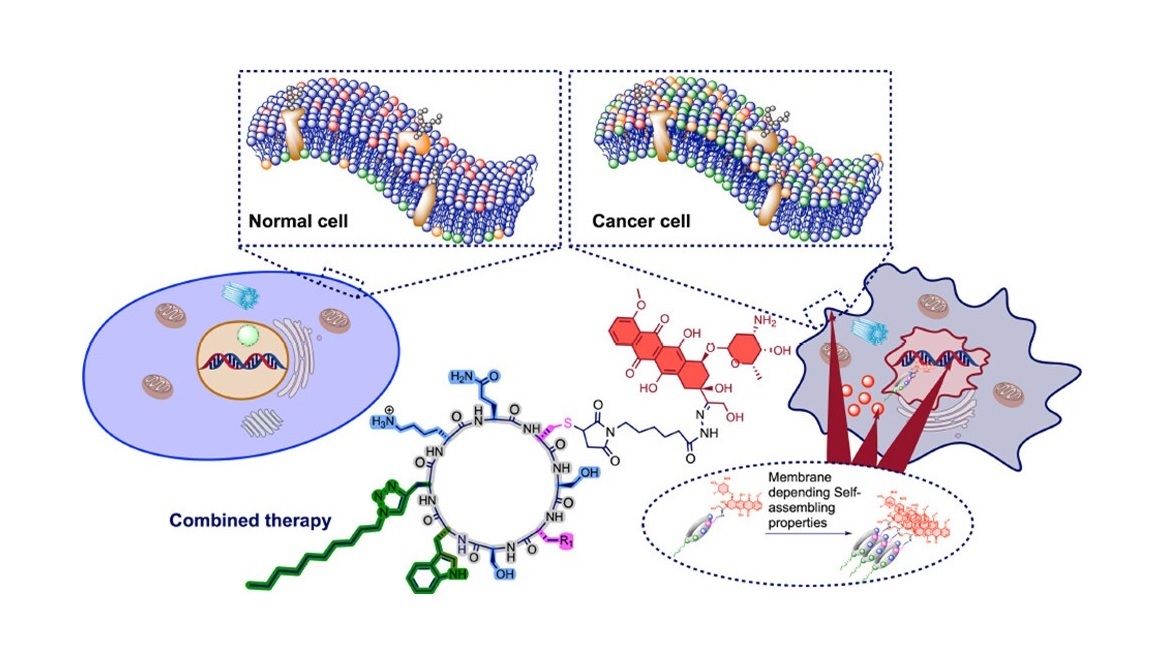 En comparación coas células sas, a membrana das células cancerosas presenta unha maior concentración de lípidos aniónicos (con carga negativa), para as cales presentan unha marcada afinidade os péptidos cíclicos empregados neste traballo, o que facilita a súa interacción coas células cancerosas. Grazas a iso, o fármaco e o ciclopéptido entran nas células cancerosas e avanzan cara ao núcleo onde a doxorrubicina se intercala co ADN celular para exercer a súa función terapéutica.