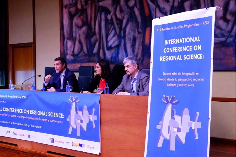 A inauguración oficial do encontro presidiuna a vicerreitora de Estudantes, Cultura e Responsabilidade Social, Dolores Álvarez Pérez, xunto a quen tamén interviñeron o presidente da Asociación Española de Ciencia Rexional, Jordi Suriñach i Caralt, e o cordinador do encontro, Manuel Fernández Grela, deu paso a diversas sesións paralelas de traballo, e ao conferenciante convidado J. Enrique Garcilazo, director da Unidade de Desenvolvemento Rural e Rexional da OCDE, unidade responsable da elaboración dos informes territoriais da OCDE sobre desenvolvemento rexional. O seu ámbito de traballo céntrase na análise de cuestións de competitividade rexional, a medición do desempeño das rexións e a identificación dos factores claves para o crecemento rexional. A súa intervención levaba por título ‘Productive regions for inclusive societies: low density regions. Places of opportunity.
