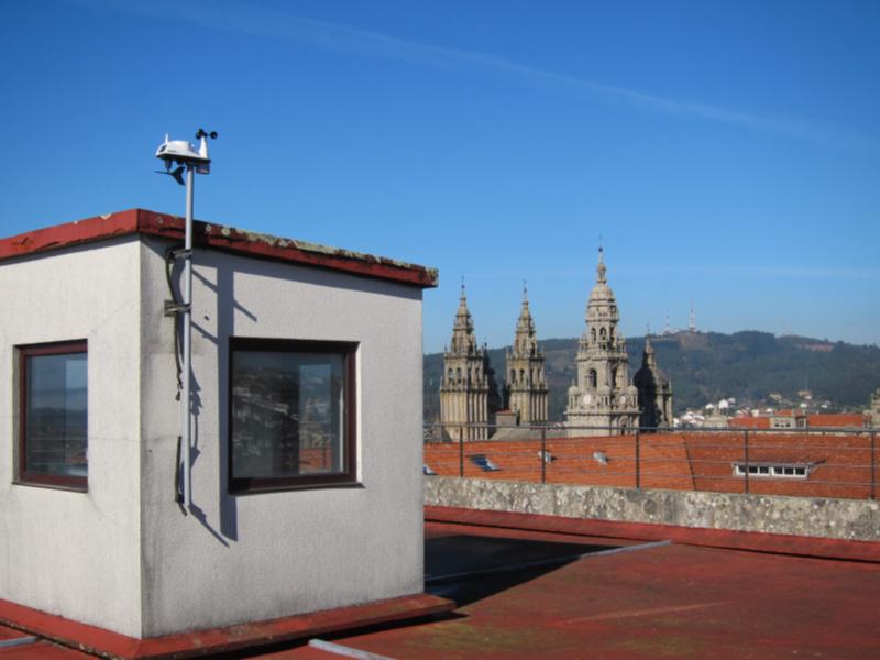 No mesmo lugar onde se instalara a primeira estación meteorolóxica de Galicia en 1849, a Facultade de Xeografía e Historia e o Departamento de Xeografía acaban de instalar unha estación meteorolóxica automática, modelo Davis Vue. Dende a terraza deste centro compostelán, a estación recolle os datos relativos a temperatura, humidade, vento, precipitación e presión de forma continuada para almacenalos cada dez minutos. A información obtida dende esta estación, tanto os datos a tempo real como os gráficos elaborados cos valores almacenados, poden consultarse libremente na web do Departamento de Xeografía (www.usc.es/xeograf). Como explican os seus promotores, a iniciativa ten dobre finalidade: ofrecer un servizo á sociedade, subministrando información en tempo real sobre as características da atmosfera no centro da cidade, e servir de apoio á docencia e á investigación que se leva a cabo no Departamento de Xeografía. A xestión desta nova instalación e da base de datos corresponde aos profesores Dominic Royé e Alberto Martí. Precursora