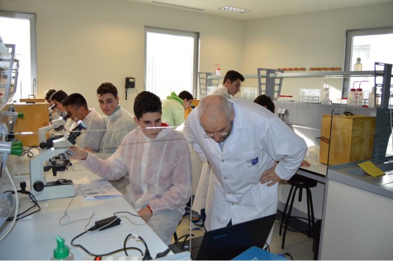 A temática das actividades promovidas pola Facultade de Ciencias a través desta iniciativa de estímulo de vocacións científicas entre os estudantes de ensino medio é variada e abrangue actividades relacionadas coas ciencias da saúde, tales como a observación de tecidos e células do sangue a través de microscopio ata outros labores de experimentación máis propios de aplicacións físicas, químicas ou da enxeñaría, como pode ser a deshidratación de alimentos, depuración de augas, produción de electricidade, pigmentación natural, medidas antropométricas e valoración nutricional, prácticas e técnicas de fluorescencia e quimiluminiscencia, deseño de extintores, preparación de funxicidas ecolóxicos... Os distintos obradoiros organizados polos docentes e demais persoal da Facultade de Ciencias ao abeiro desta iniciativa prolongáronse durante toda a xornada matinal, de 10.00 a 13.30 horas. Así, logo dun breve acto de benvida guiado polo decano da Facultade de Ciencias, José Manuel Martínez Ageitos, os estudantes do IES Ánxel Fole percorreron distintos laboratorios do centro, nos que foron protagonistas e/ou testemuñas de experimentos sinxelos que lles ofrecen unha visión práctica e diferente das múltiples posibilidades que ofrece a ciencia. O achegamento da ciencia á poboación máis nova é un dos obxectivos do ciclo ‘Ciencia para xoves investigadores’, un programa que xa vai pola súa cuarta edición e que terá continuidade ata o vindeiro 21 de xaneiro na Facultade de Ciencias de Lugo, por onde ser agarda que pasen máis de 300 escolares de 4º da ESO, pertencentes a 7 centros educativos da capital luguesa. O IES Ánxel Fole abriu este mates o programa de divulgación e estímulo de vocacións científicas entre escolares promovido pola Facultade de Ciencias, que tamén pretende con esta iniciativa dar a coñecer e presentar a súa oferta de títulos de grao en Nutrición Humana e Dietética e Enxeñaría de Procesos Químicos Industriais como opcións a ter en conta polos futuros estudantes universitarios.