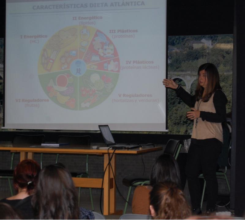 Estudantes e docentes do grao en Nutrición Humana e Dietética na Facultade de Ciencias do campus de Lugo da USC desenvolveron este venres no IES Sanxillao de Lugo unha xornada informativa e divulgativa sobre a Dieta Atlántica dirixida a estudantes de ciclo medio e superior de Hostalería. Esta actividade formativa, coordinada de forma conxunta pola catedrática de Tecnoloxía de Alimentos da USC e vogal da Fundación Dieta Atlántica, Ángeles Romero, e por María Fe Mourenza Álvarez, profesora de Hostalería no IES Sanxillao, comezou cun relatorio no que a propia Ángeles Romero expuxo as características e as vantaxes da dieta atlántica.