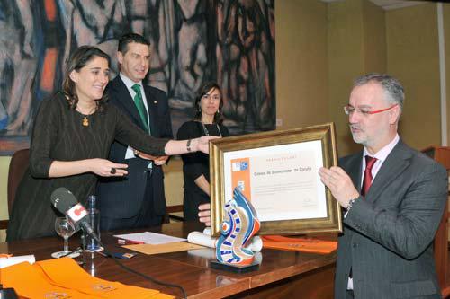 A estreita colaboración que desde hai anos mantén coa Facultade de Ciencias Económicas de Santiago serviulle ao Colexio de Economistas da Coruña para recibir este venres o Premio Fulget 2009 da Facultade de mans da súa decana, Maite Cancelo. A entrega tivo lugar no acto de celebración do patrón do centro, San Vicente Ferrer, que presidiu o vicerreitor de Economía e Financiamento, Miguel Vázquez Taín.
