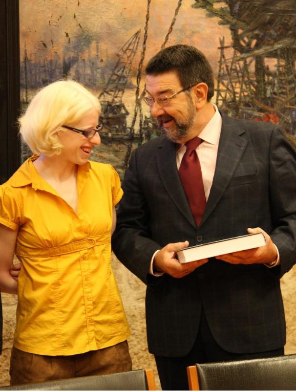 O decano da Facultade de Medicina e Odontoloxía, Juan Jesús Gestal, recibiu este martes no seu despacho á alumna de 3º curso de Medicina Susana Rodríguez Gacio para felicitala polo éxito acadado recentemente en Xixón ao proclamarse campioa do Mundo de Paraduatlón na categoría TRI-6, campionato que contou coa participación de máis de 1.150 deportistas que representaban a 35 países. O decano entregoulle esta mañá un obsequio e felicitouna polo seu esforzo “que a leva a superarse con éxito cada día, sendo un exemplo para os demais”, dixo. Estudante de segundo curso de Medicina Susana Rodríguez, cunha discapacidade visual grave, adestra no Club USC de Natación e compite coas cores do Club de Triatlón Cidade de Lugo Fluvial. Na categoría TRI-6, que combina ciclismo, natación e carreira a pé toman partida persoas con impedimentos visuais. No segmento de ciclismo úsase un tándem, mentres que na carreira a pé as atletas van atadas da man.