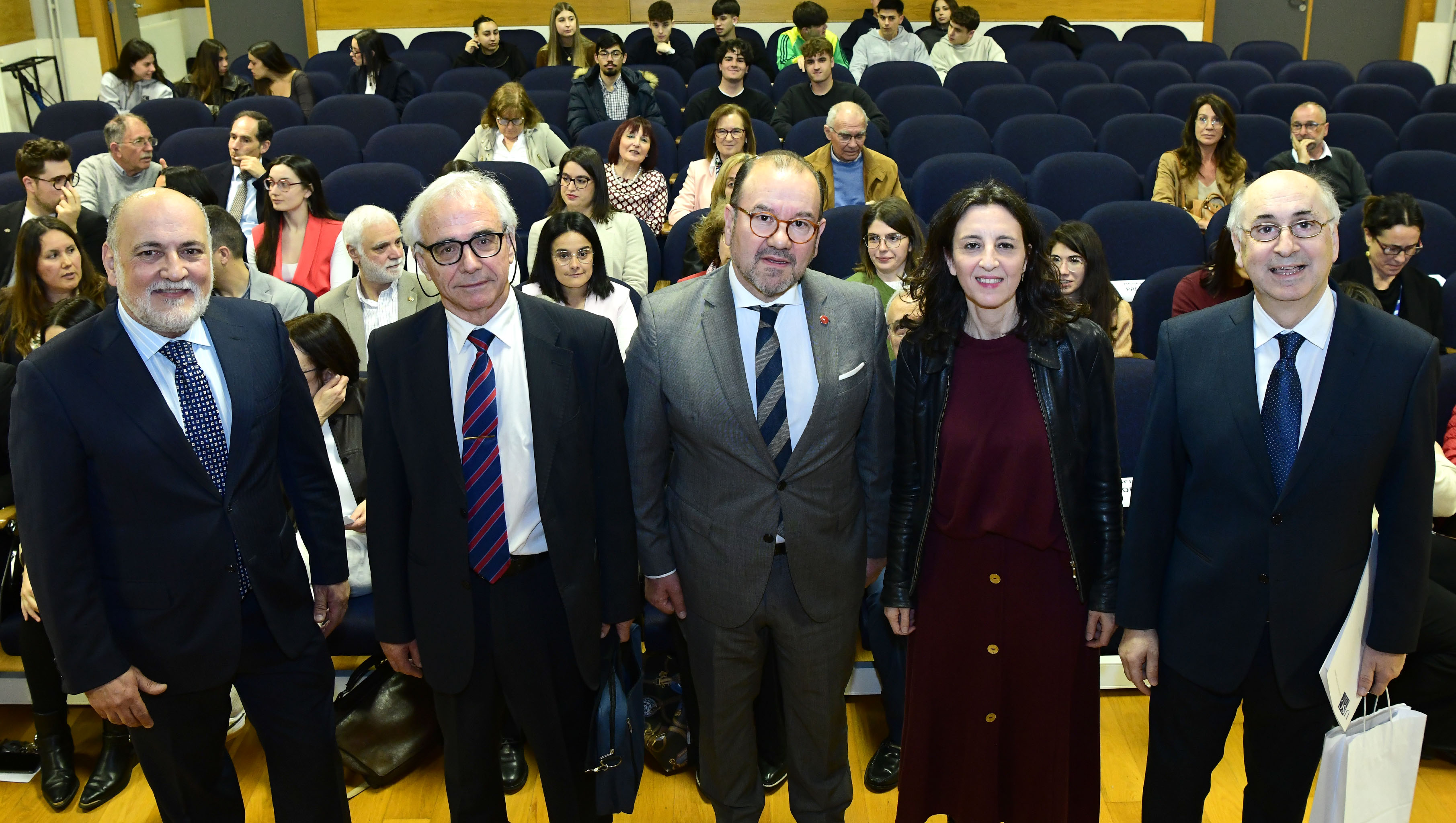De esquerda a dereita, Pérez de los Cobos, Javier Gárate, Antonio López, a vicedecana Silvia Moscoso e Jesús Salgado. Foto: Santi Alvite