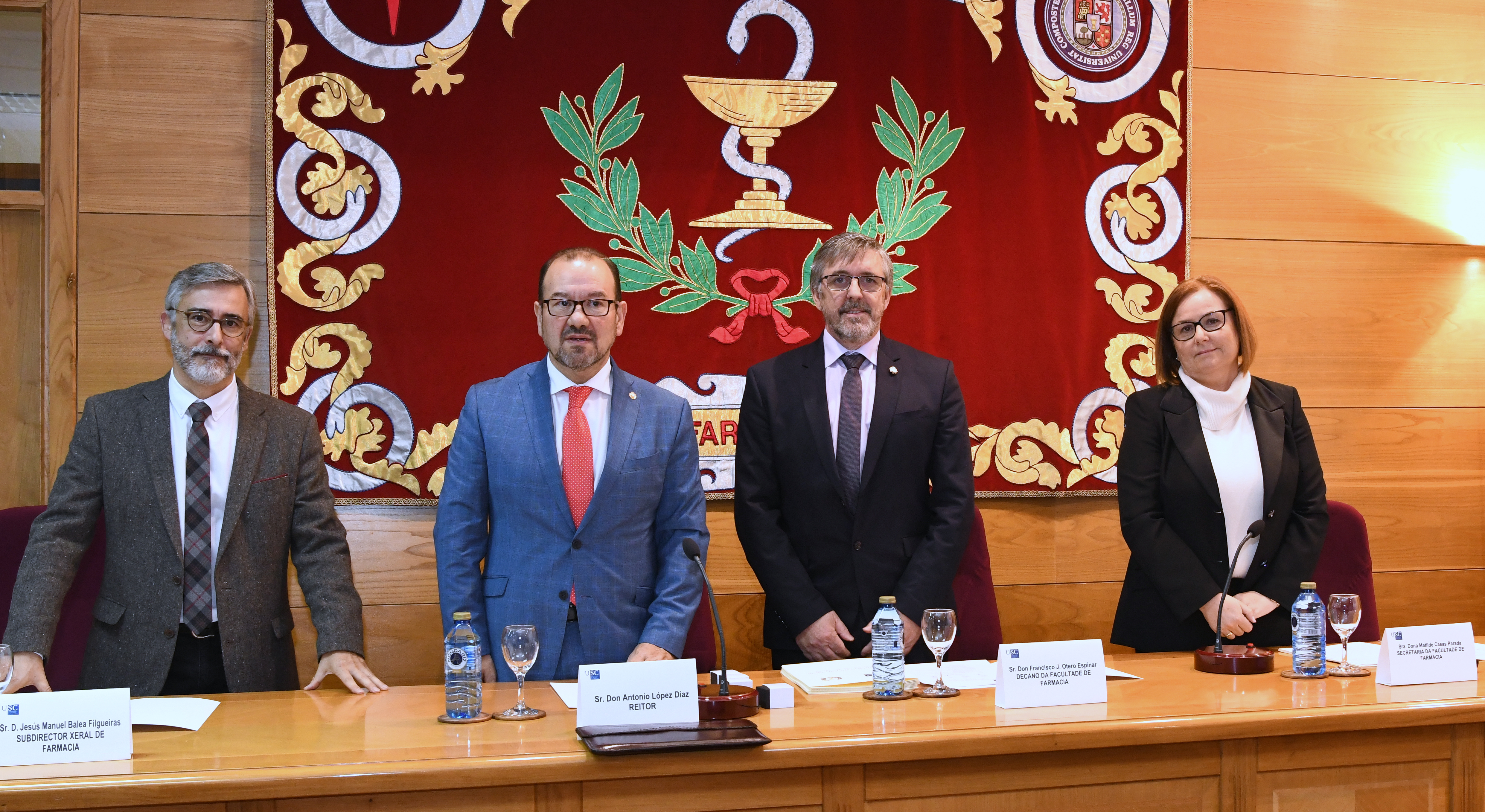Baixo a presidencia do reitor Antonio López, tamén participaron o decano do centro Francisco J. Otero Espinar; o subdirector xeral de Farmacia da Consellaría de Sanidade, Jesús Manuel Balea Figueiras; e a secretaria da Facultade, Matilde Casas Paradas, que deu lectura á memoria académica do pasado curso. Ademais a profesora María Isabel Loza García pronunciou o relatorio ‘Retos, logros e dificultades no descubrimento de medicamentos’.