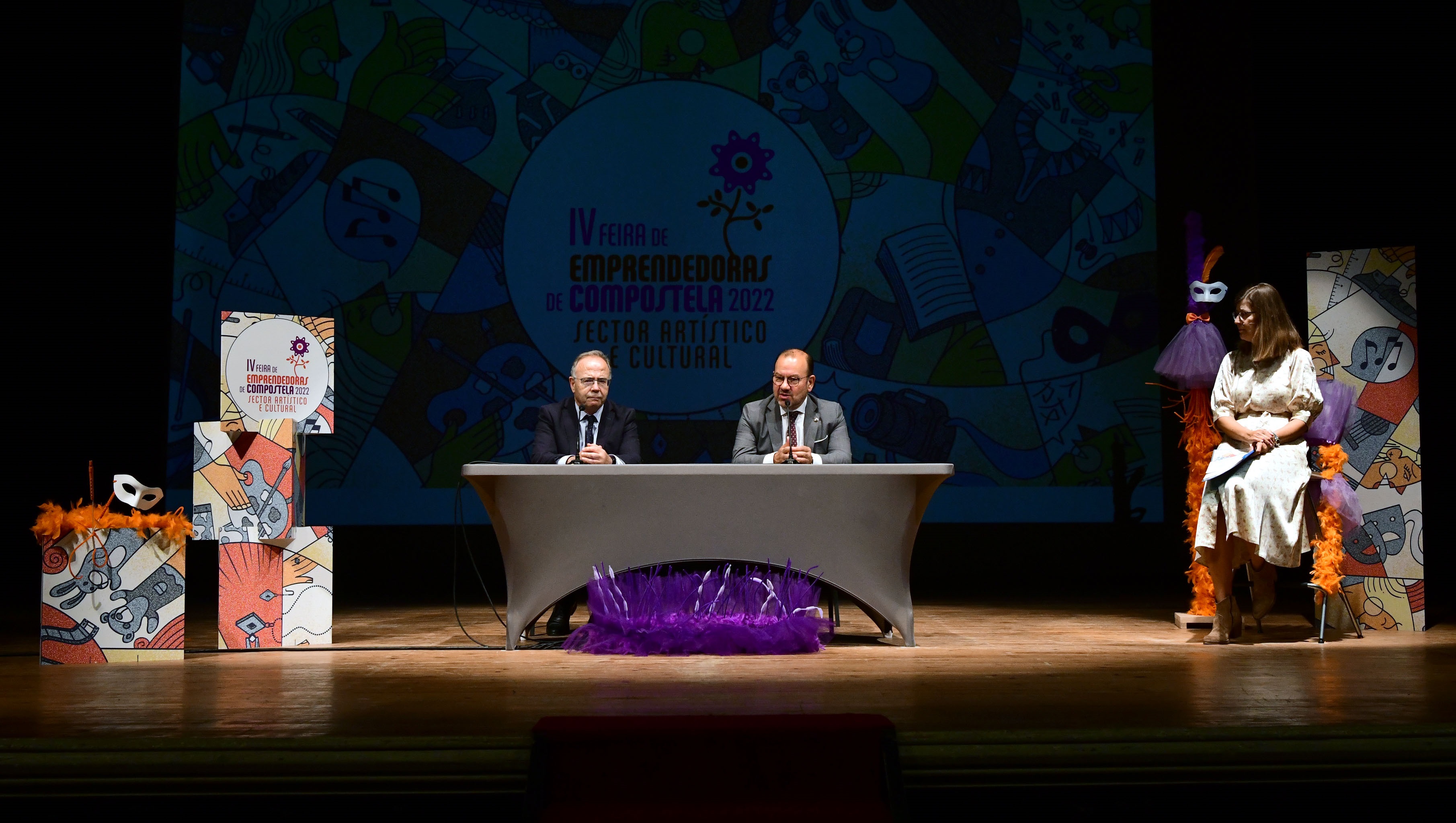 “A igualdade formal pode parecer conseguida pero a real é unha tarefa que está por conseguir”. Así se pronunciou o reitor Antonio López no acto inaugural da Feira de Emprendedoras que reúne no Teatro Principal a “entidades con liderados feministas, creadas moitas delas por mulleres referentes, imprescindibles para a consolidación dun tecido empresarial de gran valor engadido”, coas futuras xeracións de emprendedoras. Trátase dun espazo de diálogo directo no que compartir experiencias, inquedanzas e aprender, tal e como explica Eva López Barrio, directora de Woman Emprende. O evento céntrase este ano no sector artístico e cultural e, na súa inauguración, tamén participou o alcalde de Santiago Xosé Sánchez Bugallo.