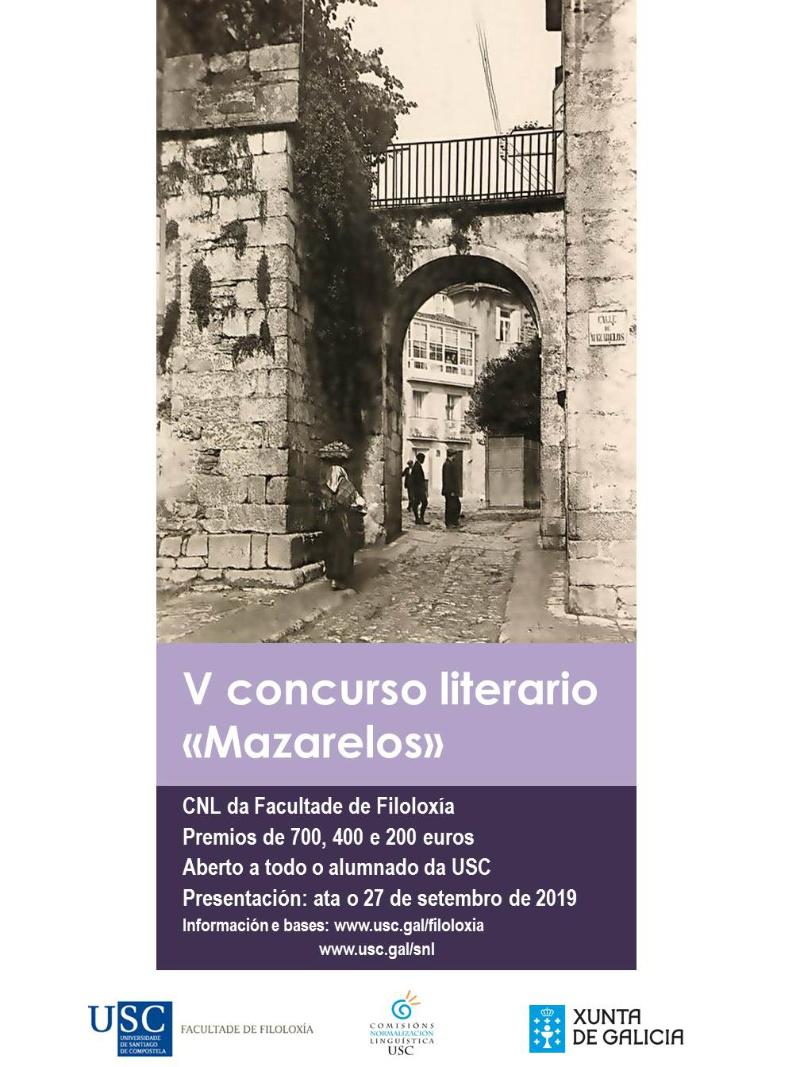 Fomentar a creatividade da mocidade universitaria e desenvolver a súa capacidade de expresión en lingua galega, así como contribuír a descubrir potenciais figuras para a nosa literatura son os obxectivos que guían a Comisión de Normalización Lingüística (CNL) da Facultade de Filoloxía da USC para convocar por quinta vez o Concurso literario Mazarelos.
