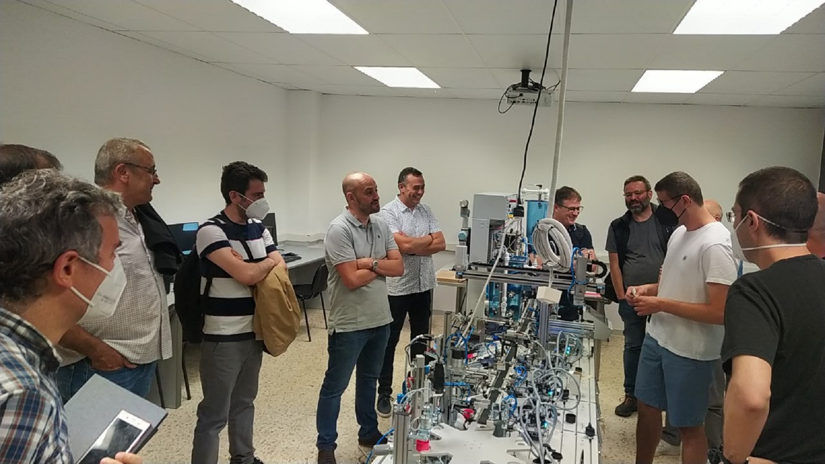 Docentes do grao en Robótica e directivos de Finsa observan diversos equipamentos na EPS de Enxeñaría