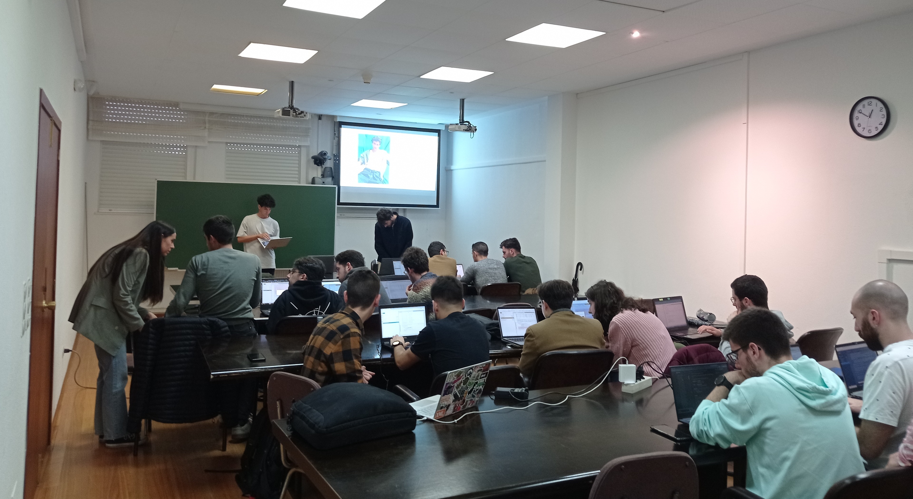 As persoas asistentes tamén tiveron a oportunidade de resolver en tempo real un reto relacionado co traballo que podería desenvolver un graduado/a en Física na empresa. A sesión celebrouse na Sala de Xuntas da Facultade e contou coa participación dunha trintena de alumnos e alumnas.