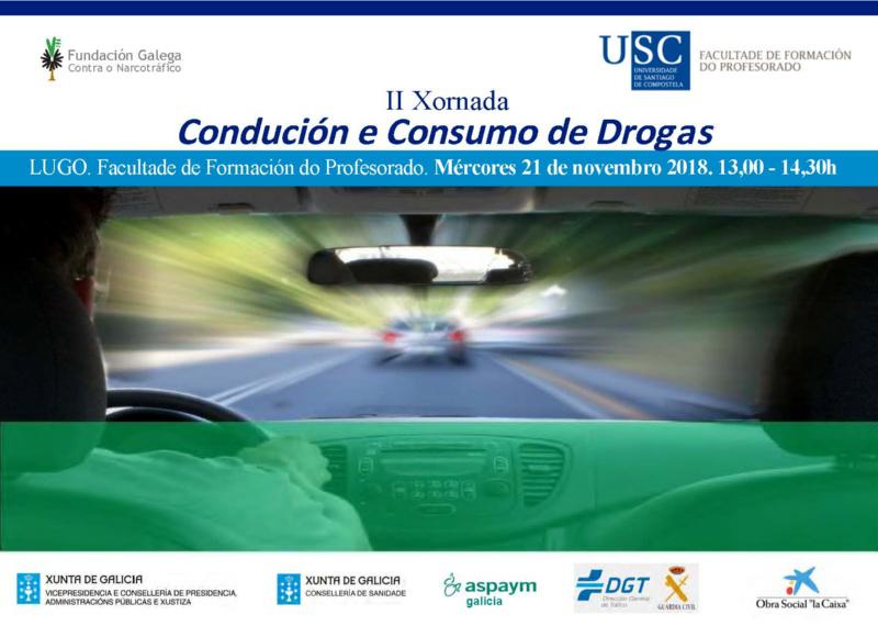 A xornada, que xa vai pola súa segunda edición e que se desenvolverá en quenda de mañá, de 13.00 a 14.30 horas, é de acceso libre e de. Trátase dunha sesión de debate especialmente dirixida ao público universitario, aínda que aberta á participación de toda a poboación interesada pola temática. O obxectivo principal desta mesa de debate, na que intervirán como relatores responsables da Dirección Xeral de Tráfico, Garda Civil e mesmo testemuñas de vítimas de sinistros de tráfico, é o de informar e sensibilizar á poboación universitaria de Galicia sobre o grave perigo que supón o consumo de drogas unido á condución.