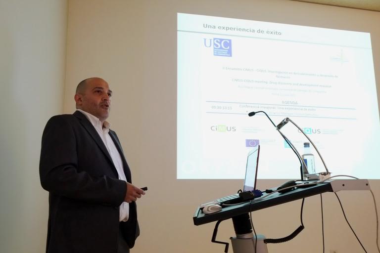 Como parte dos esforzos para promover e impulsar investigacións conxuntas entre os grupos da Rede de Centros Singulares do Campus de Excelencia Internacional Campus Vida, a USC organiza este xoves 11 unha xornada sobre ‘Investigación en descubrimento e desenvolvemento de fármacos’ no que se reúnen equipos dos centros singulares en Medicina Molecular e Enfermidades Crónicas (CIMUS) e Química Biolóxica e Materiais Moleculares (CIQUS). É un evento que coordinan as profesoras Concepción González Bello (CIQUS) e Mabel Loza (CIMUS) e que dá continuidade a unha serie de xornadas previas da rede de centros singulares como as xa celebradas sobre bioinformática (CITIUS-CIQUS-CIMUS) e a nanomedicina (CIMUS-CIQUS). O programa desenvólvese na Aula Magna da Facultade de Bioloxía e comezará coa conferencia inaugural do representante da empresa Oryzon Genomics Jordi Xaus presentando un caso de éxito en relación ao proceso de descubrimento de fármacos contemplado dende a medicina molecular e a química médica ata a súa chegada ao paciente cun composto en ensaios clínicos. O éxito de Oryzon Genomics está relacionado cun acordo coa multinacional farmacéutica Roche para a investigación, o desenvolvemento e a comercialización de inhibidores de Demetilasa. Sinerxías Deseguido, investigadores dos dous centros singulares presentaron os seus respectivos descubrimentos máis recentes como base para a identificación de sinerxías e complementariedades. Por parte do CIMUS interviñeron Eduardo Domínguez, que traballa no campo da identificación e validación de dianas para enfermidades crónicas; Fernando Domínguez, centrado no desenvolvemento de ferramentas terapéuticas fronte o cancro; Marcos García Fuentes, investigador no ámbito da nanomedicina; e Rubén Nogueiras, cuxa liña de traballo sitúase na área do metabolismo molecular. Do CIQUS falaron Concepción González Bello, especializada no desenvolvemento de fármacos con novos mecanismos de acción para combater o crecemento de bacterias resistentes aos antibióticos; José Martínez Costas, da área de viroloxía e vacinas; Javier Montenegro, coas súas achegas no campo da síntese orgánica; e Eddy Sotelo, cuxo traballo desenvolve ferramentas para acelerar a busca de novas moléculas candidatas. A xornada finaliza cunha mesa redonda, xa a partir das 15.30 horas, sobre a visión global do proceso dende a identificación temperá dun composto activo fronte unha enfermidade ata a súa aplicación no paciente e o seu impacto socio-económico. Interveñen representantes do Ministerio de Economía, Xunta de Galicia e Instituto de Saúde Carlos III, Emilio Vargas moderados polos directores do CIMUS e do CIQUS, Carlos Diéguez e José Luis Mascareñas, respectivamente. Esta xornada conta co financiamento da Consellaría de Educación e Ordenación Universitaria e o Fondo Europeo de Desenvolvemento Rexional e dos propios centros singulares. Jordi Xaus, de Oryzon Genomics, abriu a quenda de intervencións mostrando un caso de éxito. Foto: Servimav-USC