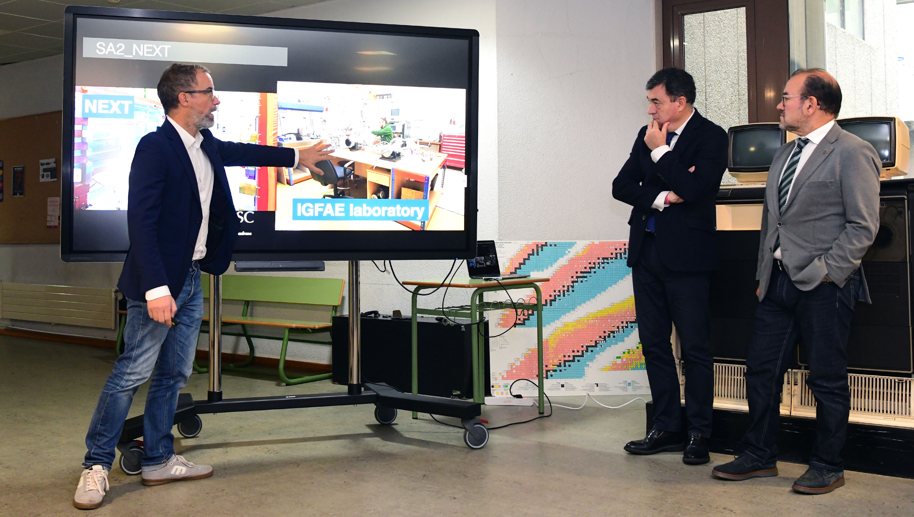 O Instituto Galego de Física de Altas Enerxías (IGFAE), centro mixto da USC e da Xunta de Galicia, disporá dunha sede á altura da súa dimensión como centro clave “na captación de talento” e que lle permita “adecuar o espazo ás súas necesidades”, tal e como apuntou o reitor Antonio López na presentación dun proxecto que mobilizará preto de cinco millóns de euros e que se enmarca no convenio entre a Consellería de Cultura, Educación, FP e Universidades e as tres universidades galegas para mellorar as súas infraestruturas de investigación. “Este é un salto cualitativo”, dixo Carlos Salgado, director do IGFAE, “que nos permitirá acadar metas máis ambiciosas”.