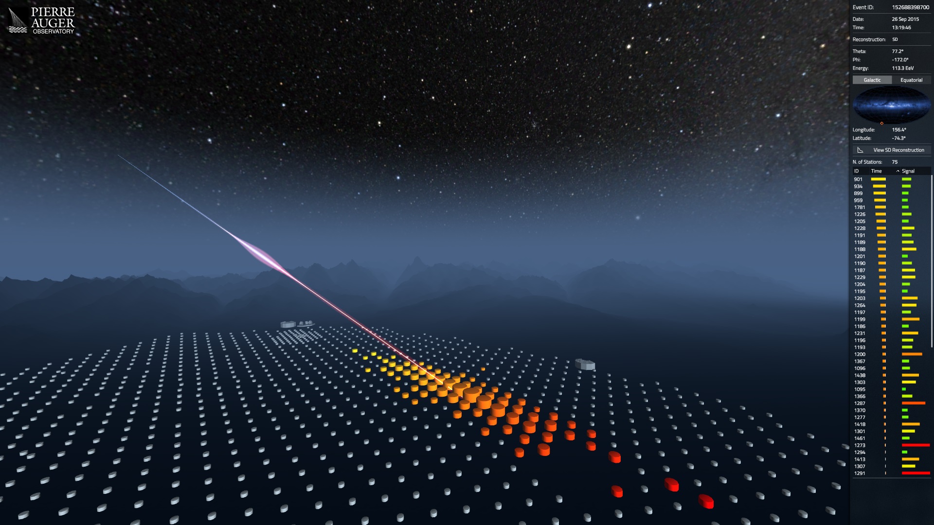 O IGFAE participa no catálogo interactivo con 100 dos raios cósmicos máis enerxéticos xamais detectados