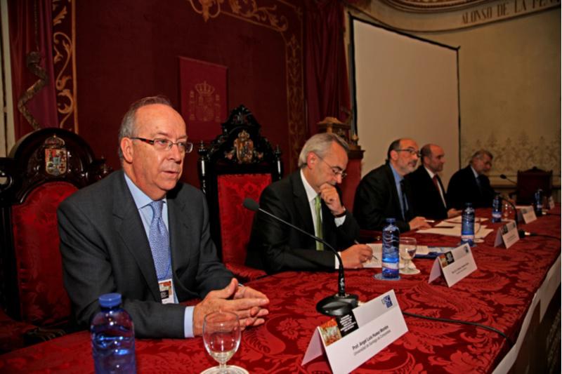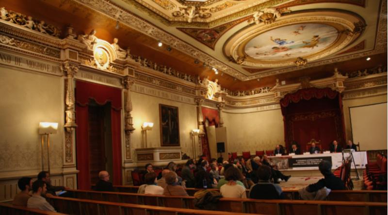 O paraninfo da Facultade de Xeografía e Historia reúne dende este xoves 3 e ata o sábado 5 a expertos e expertas europeas no III Congreso Internacional de Historia e Cine para reflexionar sobre os modelos de interpretación para o cine histórico. O director Bertrand Tavernier pronunciará a conferencia de clausura. Esta é unha acción formativa que coordina o catedrático de Historia do Cine da USC Luis Hueso e na que tamén participan na organización docentes das universidades de Barcelona, Carlos III de Madrid e Santiago, así como do proxecto de investigación ‘Modelos de Interpretación en el cine histórico español’. A inauguración do congreso presidiuna o vicerreitor de Estudantes, Cultura e Formación Continua, Francisco Durán; e contou ademais coa intervención do secretario xeral de Medios da Xunta de Galicia, Alfonso Cabaleiro; do catedrático e coordinador do congreso, Luis Hueso; e do decano da Facultade de Xeografía e Historia, Juan Monterroso. Asistiron ademais o director xerente do Consorcio Audiovisual Galego, Anxo Quintanilla; e o director do Departamento de Historia da Arte, Enrique Fernández Castiñeiras. Deseguido, o profesor de Historia na División de Humanidades e Ciencias Sociais do Instituto Tecnolóxico de California (Caltech) e especialista en Historia Moderna e en Historia do Cine, Robert Rosenstone, abriu o programa do congreso coa conferencia ‘The Historical Film as a Field, a Mode of Through, and a Pack of Tricks We Play Upon The Dead’. O profesor Rosenstone propuxo unha reflexión sobre as posibilidades da imaxe cinematográfica para recrear o pasado e, sobre todo, formulou unha serie de interrogantes sobre a incardinación das películas históricas en momentos concretos da sociedade presente, a forma como os responsables das películas envorcan nelas as súas inquietudes e concepcións da vida e a necesidade de formular o reto de facer historia a través das imaxes. Seguiulle o catedrático de Teoría da Literatura e Literatura Comparada da Universidade de Salamanca José A. Pérez Bowie cun relatorio no que abordou os criterios cos que a literatura do século XIX foi utilizada en épocas diferentes do cine español para ofrecer visións determinadas do pasado. Esta primeira sesión complétase coa presentación a partir das 16.30 horas do proxecto de investigación ‘Modelos de Interpretación do cine histórico español’, a cargo de Luis Hueso, do catedrático da Universidade de Barcelona José Mª Caparrós e da profesora da Universidade Carlos III Gloria Camarero. O programa do venres 4 comezará ás 10.00 horas coa presenza do catedrático de Historia da Comunicación Social na Universidade Complutense de Madrid Julio Montero para falar sobre a investigación histórica e documental. Membro da International Association for Media and History dende 2004, é organizador das Xornadas Internacionais de Historia e Cine da Universidade Complutense dende 1995, creador dos posgraos de Realización de Guións de Audiovisuais Históricos e Realización de Documentais Históricos, e coordinador dos programas de doutoramento do Departamento de Historia da Comunicación Social desa Universidade, ‘Comunicación de Masas: Información, Entretemento e Propaganda’ e ‘Comunicación de Masas: Información e Propaganda’. Seguiralle, a partir das 11.00 horas, Matteo Sanfilippo, profesor asociado de Historia Moderna e director do Departamento de Ciencias Humanas da Universidade da Tuscia (Italia). É autor dunha vintena de monografía sobre teoría e historia da comunicación en Canadá e Estados Unidos, a relacións entre historia e cine ou sobre o estudo da emigración italiana, así como numerosos ensaios científicos e artigos divulgativos e colaboracións en varias publicacións electrónicas. O catedrático de Historia Contemporánea da Universidade do País Vasco Santiago de Pablo completará esta sesión matinal cunha reflexión sobre ‘Cine histórico e nacionalismo vasco: un modelo de interpretación’. É membro da Asociación Internacional Film-Historia, da Asociación de Historia Contemporánea, da Asociación Española de Historiadores do Cine, da Fundación Filmoteca Vasca-Euskadiko Filmategia ou da Academia das Artes e as Ciencias Cinematográficas de España. Participou na rede internacional de coñecemento Raíces (Historia e problemas do século XX) con profesores de Arxentina, Francia, Israel, Estados Unidos, Suíza e España dende 2008. Este segundo día do encontro completarase cunha proxección e posterior debate sobre Buscando el paraíso (Manuel Gómez, 2011) a partir das 19.30 horas. Tavernier Na terceira e derradeira xornada do congreso, o sábado 5 será a quenda para a presentación de comunicacións. A conferencia de clausura corresponderalle a Bertrand Tavernier, director e guionista francés que aborda diferente xéneros a partir de tramas de gran contido ideolóxico. A intervención de Tavernier, programada para ás 12.30 horas, leva como título ‘L’Histoire et mon cinéma’. A filmografía de Tavernier, considerado un dos realizadores franceses máis importantes da actualidade, ofrece algunhas das reflexións máis interesantes sobre a sociedade francesa e os momentos máis singulares da súa historia contemporánea como son os grandes traumas que supuxeron as dúas guerras mundiais. Debuta como director coa adaptación da novela de Georges Simenon O reloxeiro de St. Paul, ao que lle seguirán outros títulos como o drama histórico Que a festa comece, o drama psicolóxico O xuíz e o asasino, ou A morte en directo. En anos posteriores profunda nos dramas individuais, familiares e sociais con títulos como Arredor da media noite ou Un domingo no campo. Durante a década dos 90 realizou varios documentais, destacando un dos seus traballo máis aclamados polo público A carnaza (1995) unha polémica visión da mocidade francesa. Os seus máis recentes traballos son A pequena Lola (2004), No centro da tor