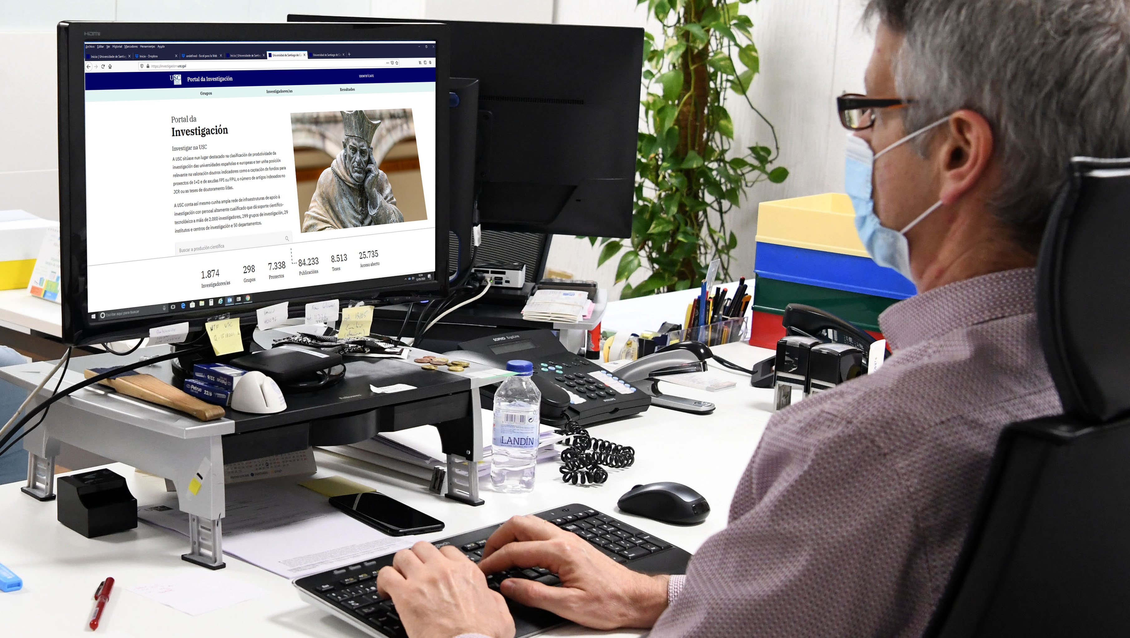 O Portal da Investigación da USC acaba de ver a luz co obxectivo de difundir, dar visibilidade e transferir á sociedade os resultados das actividades de investigación da Universidade. Este novo espazo facilita o acceso ás publicacións e datos de investigación, contribuíndo aos obxectivos da ciencia aberta. Ademais, establece unha relación entre o financiamento e os seus resultados, realizando un exercicio de transparencia ao tempo que mellora a visibilidade e o impacto da institución. Nesta fase inicial de posta en marcha, só se pode acceder ao Portal dende as redes da USC.