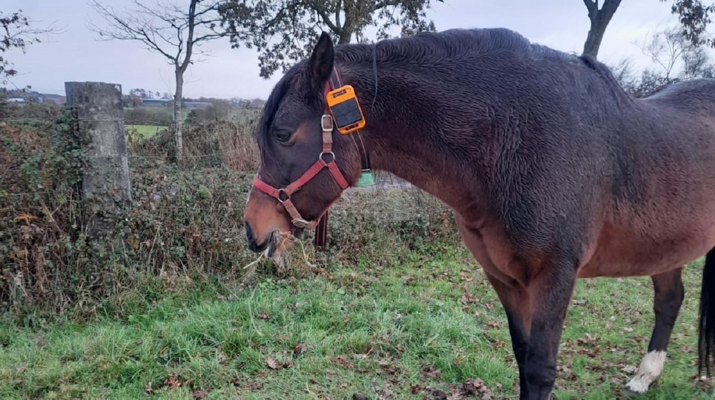 Un cabalo co dispositivo de monitorización RUMI de Innogando
