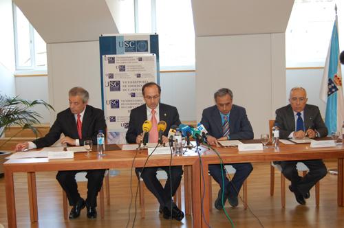 O reitor da USC, Senén Barro; o conselleiro de Medio Ambiente e Desenvolvemento Sostible, Manuel Vázquez Fernández; o conselleiro de Medio Rural, Alfredo Suárez Canal;  e o presidente da Deputación...