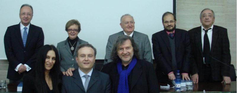 Armando Requeixo, entre Carmen Blanco e Rodríguez Fer, diante dos membros do tribunal que avaliou a súa tese de doutoramento