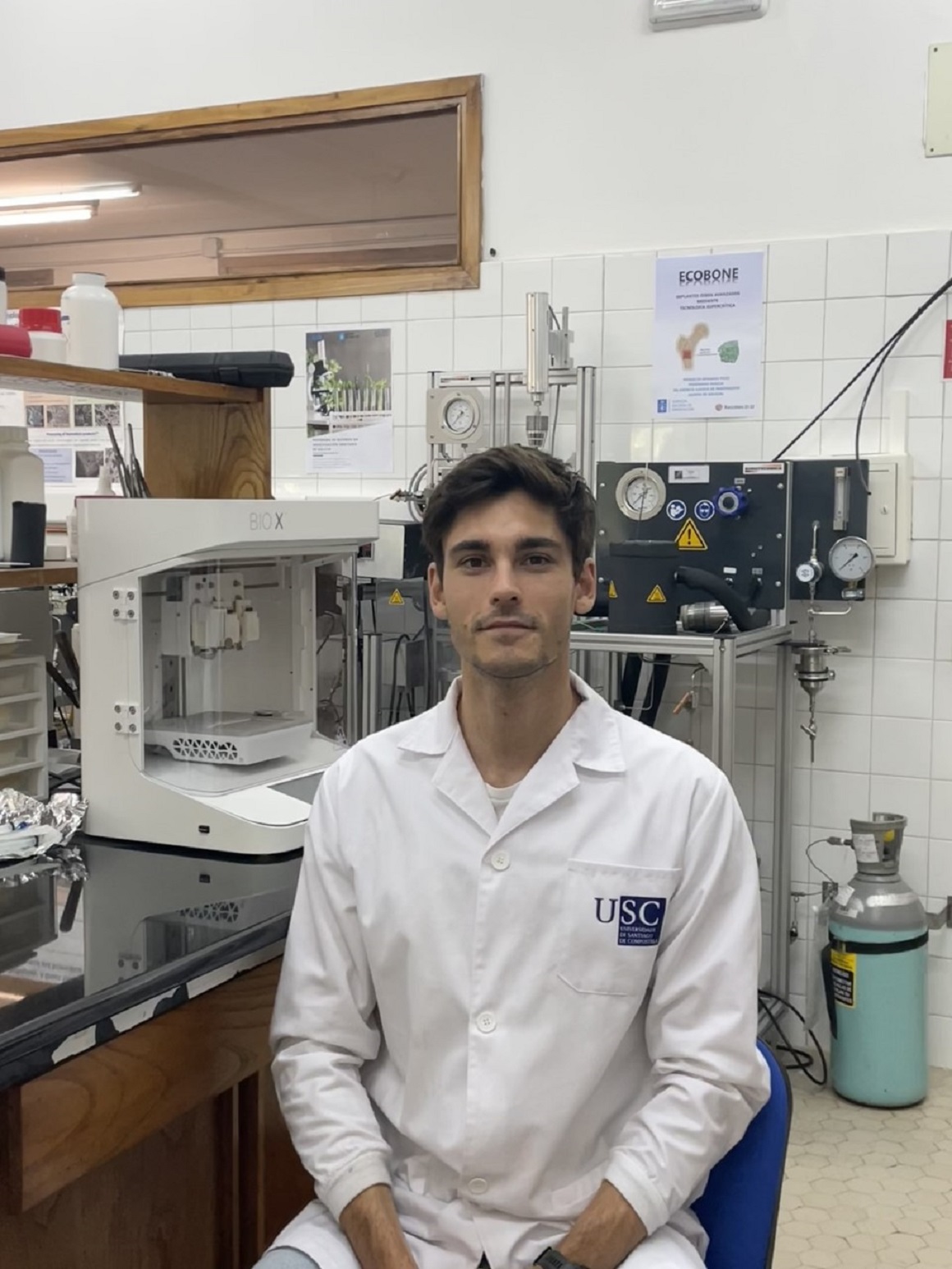 Outra innovación desta tese consistiu na xeración de coñecemento sobre a esterilización empregando CO2 supercrítico. “Esta nova tecnoloxía permite a esterilización de biomateriais, fármacos termolábiles e substancias sensibles preservando as súas propiedades iniciais e acadando os niveis de esterilidade requiridos dende un punto de vista lexislativo”, engade. Entre outros fitos, o grupo I+DFarma, en colaboración co grupo liderado pola profesora Beatriz Magariños, identificou o indicador biolóxico para controlar este tipo de procesos, e polo tanto, sinalou o camiño “en prol dunha estandarización que se percibe como de extrema urxencia pola comunidade científica internacional”, matiza o investigador. Nun paso máis alá, a esterilización con CO2 supercrítico integrouse coa preparación de implantes óseos, sendo incluso compatible coa incorporación simultánea de fármacos.