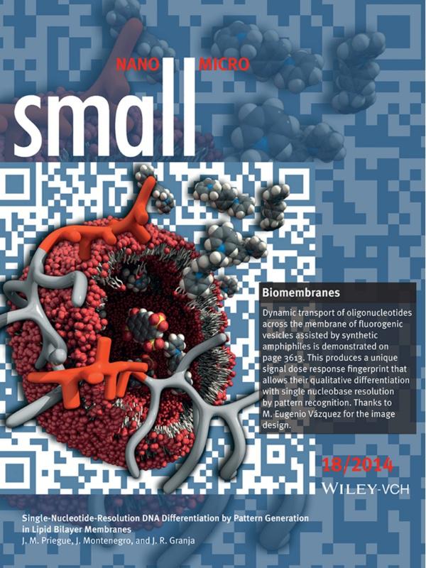 Esta metodoloxía, ten por tanto, un enorme potencial para a amplificación das diferenzas en moléculas moi similares. Esta realidade inspirou aos investigadores da USC para desenvolver o seu propio sistema de detección baseado por exemplo na química receptor/substrato. Con todo, neste traballo os investigadores do CIQUS empregaron o transporte de moléculas de ADN a través de membranas de lípidos (como as membranas celulares) para xerar diferentes patróns de transporte. A súa hipótese era que se un ADN longo transportase rápido e a baixa concentración, e un ADN curto é transportado lentamente e nunha concentración elevada, poderíanse utilizar estes comportamentos diferentes para detectar e diferenciar as moléculas de ADN. Os resultados deste estudo demostraron que a amplificación das diferenzas observadas durante os eventos de transporte permitiu a diferenciación do ADN cunha excelente resolución dun só nucleótido. O interese destes resultados radica en que poden servir de modelo na fabricación de moitos sistemas de detección baseados en patróns para calquera outro polímero de importancia biolóxica (ADN, ARN...), o cal representa hoxe en día un reto moi importante na bioquímica. Este traballo, que vén de ser destacado pola revista Small na súa sección de Frontispicio, foi desenvolvido totalmente no CIQUS polo estudante de doutoramento Juan M. Priegue en colaboración co investigador postdoutoral Javier Montenegro e baixo a dirección do catedrático do Departamento de Química Orgánica da USC Juan R. Granja Guillán. Consideracións técnicas A detección e identificación de polímeros de interese biolóxico, tales como ADN ou ARN, segue sendo un reto importante na bioquímica. O transporte de polianiones (é dicir, ADN) a través da membrana de liposomas cargados con fluoróforos pode ser activado por pequenas moléculas anfifílicas catiónicas (activadores). Os sinais fluorescentes correspondentes obtidos neste tipo de experimentos de transporte son diferentes, dependendo das moléculas empregadas para activar o transporte de ADN. Estas diferenzas no transporte pódense utilizar, polo tanto, para xerar patróns de fluorescencia que resultan ser distintivos para pequenos activadores non iónicos similares. Con este fin, este protocolo permite a diferenciación de analitos similares por medio de protocolos da xeración do patrón / de recoñecemento. Os investigadores confirman neste novo traballo que a mesma metodoloxía tamén pode ser usada para xerar patróns de resposta a doses únicas de diferentes polímeros aniónicos (ADN, ARN) de relevancia biolóxica. Para iso, deseñaron "de novo" e desenvolveron unha estratexia de síntese para a preparación de oximas dinámicos-anfífilos para a activación de transporte de ADN a través das bicapas lipídicas. As impresións dixitais fluorescentes (diagrama de doses e resposta) xeradas en experimentos de transporte de vesículas permite a diferenciación dunha colección de biopolímeros cunha excelente capacidade de reprodución e precisión, até a resolución dun só nucleótido en oligonucleótidos de cadea simple curta.