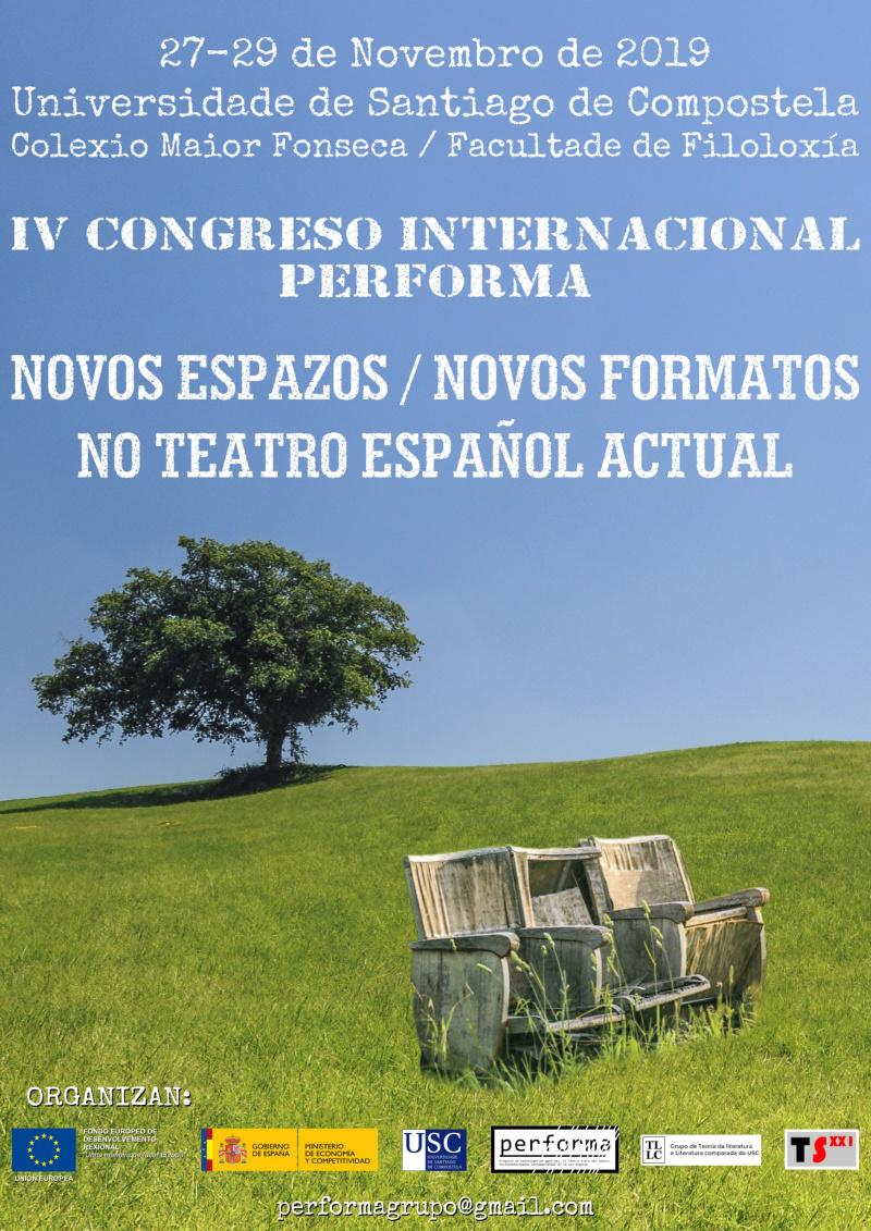O IV Congreso Internacional Performa desenvolverase entre o 27 e o 29 de novembro no Colexio Maior Fonseca e na Facultade de Filoloxía da USC, congregando a máis de corenta voces expertas do eido teatral, tanto do ámbito académico como profesional. Nesta edición, o foro desenvólvese baixo o lema ‘Novos espazos/Novos formatos no teatro español actual’.