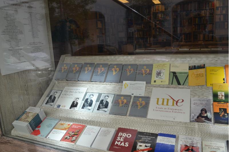Como parte da campaña promocional da produción editorial da USC en lingua galega, varios volumes da colección Clásicos do Pensamento Universal , que a USC coedita coa Fundación BBVA, e o libro institucional que a Universidade dedica a Xosé Filgueira Valverde no Día das Letras Galegas 2015 ocupan durante esta semana e a seguinte boa parte do escaparate da libraría da UNE en Madrid, situada no centro da capital. Esta campaña foi deseñada polo Servizo de Publicacións coincidindo co Día do Libro e o Día das Letras Galegas para relanzar unha colección única no panorama editorial galego, como é Clásicos do Pensamento Universal, que, dende Maquiavelo ou Spinoza a Freud ou MacLuhan, pon ao dispor do público as grandes obras do pensamento e a ciencia en esmeradas traducións a lingua galega. A campaña iniciouse cunha sensible redución dos prezos da colección e segue agora coa presenza da colección e o libro das Letras nas principais librarías das cidades galegas.