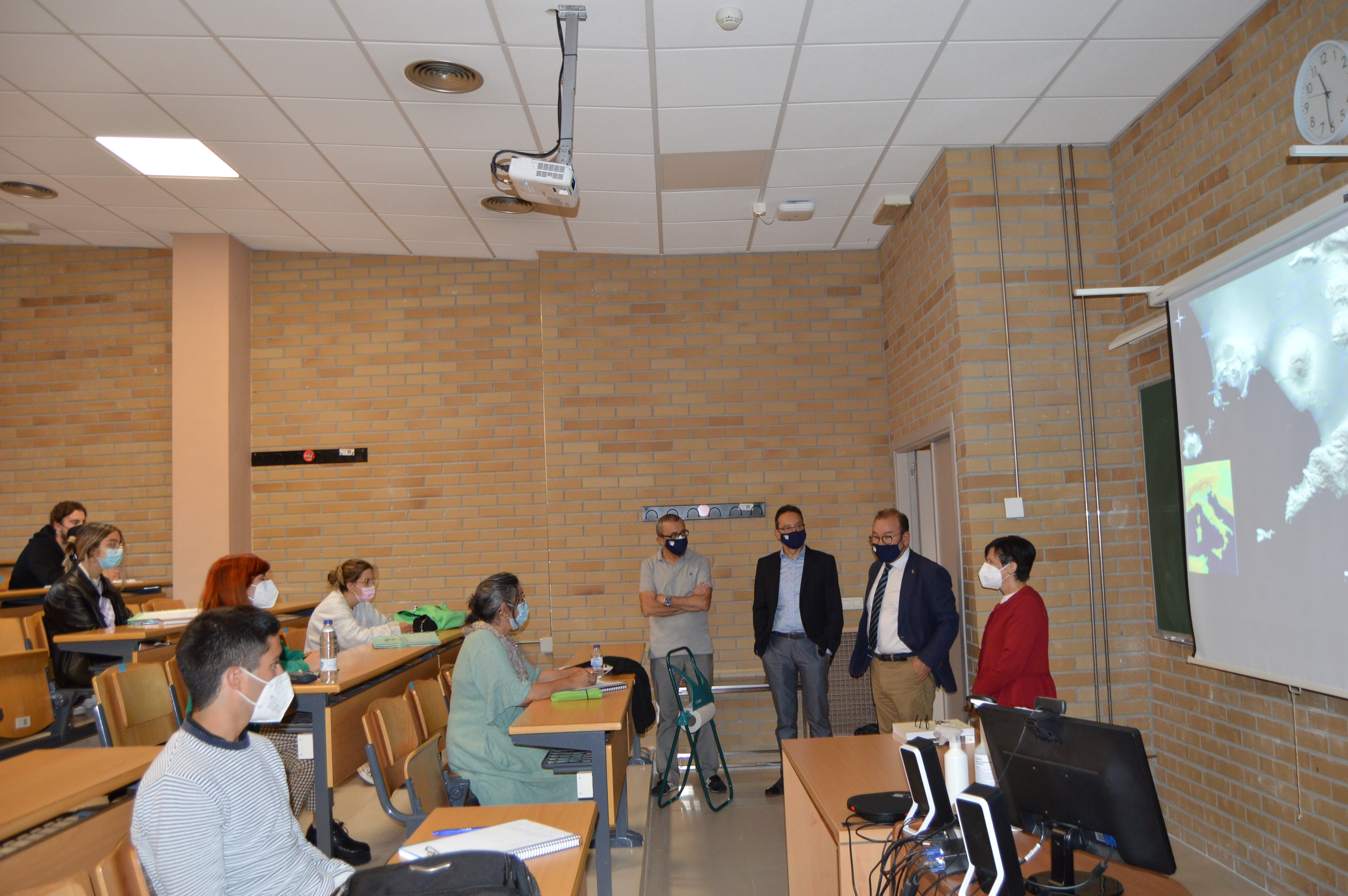 O reitor da USC, Antonio López, acompañado do decano da Facultade de Humanidades do Campus de Lugo, Gonzalo Fernández, mantivo este mércores un encontro co alumnado do novo título grao de Xestión Cultural. A visita, na que tamén participou o adxunto á Vicerreitoría de Coordinación do Campus de Lugo para Estudantes, Cultura, Internacionalización e Servizos, Jesús Varela Zapata, permitiu constatar a “ilusión” do alumnado con este novo título.