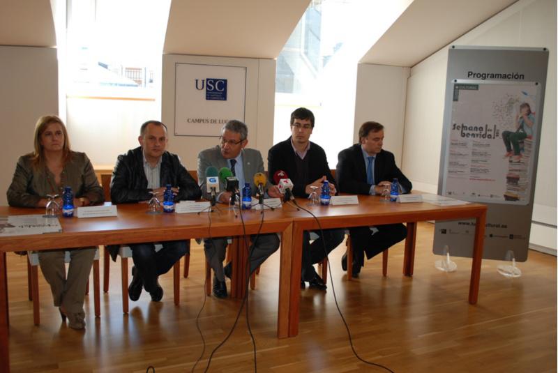 Por quinto ano consecutivo Lugo Cultural daralle a benvida a vindeira semana ao estudantado que este curso se achega ao Campus cunha serie de iniciativas, todas de entrada libre, que supoñen o inicio dunha axenda de actividades de diversa índole que encherán de vida a cidade amurallada. A Semana de Benvida prolóngase dende o luns 24 ata o xoves 27 conxugando accións expositivas, musicais, teatrais, de danza e históricas. Así, o luns ás 12.00 horas no Centro Social Municipal Uxío Novoneyra presentarase o catálogo do XVII Maratón Fotográfico do campus e inaugurarase a exposición dos traballos presentados nesta edición. A mostra permanecerá aberta ata o día 18 de novembro de luns a venres de 16.00 a 21.00 horas. O programa da Semana de Benvida presentárono este xoves o vicerreitor de Coordinación e Planificación do Campus de Lugo, Pedro García Herradón; o tenente alcalde e responsable das áreas de Cultura, Turismo e Promoción da Lingua, Antón Bao Abelleira; o deputado provincial da Área de Cultura e Turismo, Mario Outeiro Iglesias; a xefe do Servizo de Turismo en Lugo, Paloma Vázquez Fernández; e Sinesio Pérez Rodríguez, de NovaCaixaGalicia. Música As actividades musicais darán comezo o martes 25 cun concerto da banda Doa, que presentará o seu novo disco A Fronda dos Cervos no que explora o simbolismo dos bosques milenarios demostrando, unha vez máis, a súa mestría e orixinalidade. Será na Escola Universitaria de Formación do Profesorado ás 20.30 horas. Xa o mércores terá lugar un concerto comentado de música barroca con instrumentos de corda pulsada a cargo de Rafael Muñoz. O interprete realizará comentarios acerca dos instrumentos empregados e o repertorio interpretado, situándoos no seu contexto histórico e explicando a súa proxección actual. Na Casa do Saber ás 20.30 horas. Por último, o xoves actuará ás 20.30 horas no Auditorio da Facultade de Veterinaria Jotinho’s, un proxecto que nace da man de varios músicos de Lugo coa intención de explorar as vertentes máis clásicas da bossa nova, nomeadamente de Vinícius de Moraes e Toquinho. Para facilitar a asistencia haberá un autobús dende Maxisterio ata Veterinaria con saída ás 20.00 horas, que volverá ao finalizar o concerto. Danza O Espazo de Danza da USC, con sede en Lugo, participa tamén nesta semana cultural organizando distintas intervencións da Compañía Amparo Novas nos centros universitarios do campus. Danza interactivaexplora diferentes espazos da universidade tentando cambiar a rutina diaria. Mediante a intuición e a improvisación créanse espazos diferentes aos que acostumamos, onde a sensibilidade toma protagonismo e a danza consegue traspasar fronteiras. Amparo Novas actuará o luns no vestíbulo da Escola Universitaria de Formación de Profesorado ás 11.45, na vidreira da Facultade de Veterinaria ás 14.30 e no aulario da Facultade de Administración e Dirección de Empresas ás 17.30 horas. O martes as intervencións serán ás 12.00 en Humanidades, ás 14.30 na EPS e ás 20.30 na Residencia Universitaria Jesús Bal y Gay. Teatro A Aula de Teatro do Campus de Lugo intervén no programa cunhas clases abertas de teatro a cargo de Paloma Lugilde e Alberte Cabarcos, que mostrarán os diferentes talleres que se ofrecen na USC ao longo do ano así como a dinámica das compañías propias da Universidade. Serán no aulario de Veterinaria o mércores ás 13.00 e o xoves ás 14.00 horas. Ademais, do 27 de outubro ata o 30 de novembro a mesma facultade acollerá a exposición A fotografía e a escena, que recolle instantes dos actores, escenógrafos, xastres, deseñadores, iluminadores, adaptadores, maquilladores, dramaturgos e directores que nalgún momento formaron parte da Aula. Historia e patrimonio Por último, e co obxecto de pór en valor o patrimonio da USC no Campus lugués, o xoves 27 celebrarase unha xornada de portas abertas na Casa do Saber con Celso Rodríguez Cao, arqueólogo director das escavacións do xacemento arqueolóxico, que axudará a comprender e coñecer a historia da cidade de Lugo a partir de Mitra. Serán visitas guiadas dunha hora de duración en catro quendas (12.00, 13.00, 18.00 e 19.00 horas), cada unha limitada a un máximo de 25 persoas polo que se recomenda facer reserva de hora nos teléfonos 982 821 513 ou 982 821 500