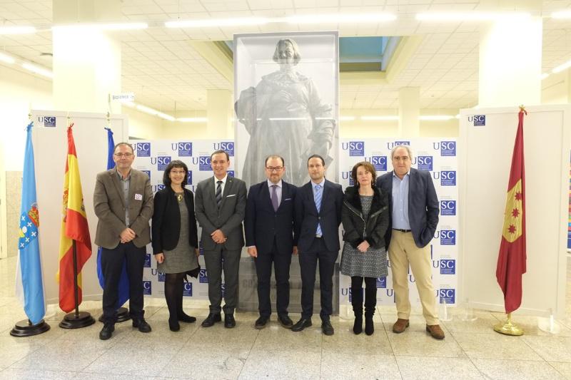 O novo equipo decanal xunto con integrantes do equipo reitoral. Foto: Servimav-USC