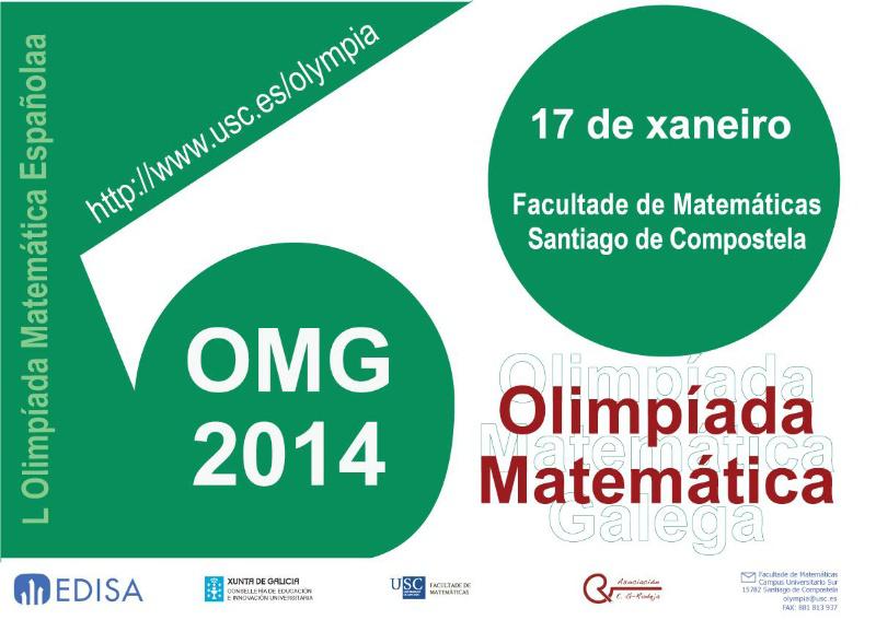 A Facultade de Matemáticas da USC dará acubillo este venres 17 á Fase Autonómica da L Olimpíada Matemática Española correspondente ao ano 2014. A competición diríxese ao alumnado de bacharelato e nela selecciónanse as tres persoas que formarán o equipo olímpico que represente a Galicia na Fase Nacional, a celebrar do 27 ao 30 de marzo na localidade valenciana de Requena. O programa dará comezo ás 10.00 horas cunha recepción aos participantes, tras a que dará comezo a primeira sesión: tres horas e media para resolveren tres problemas. A segunda será ás 16.00 horas co mesmo tempo e desenvolvemento. Para esta edición a Olimpíada Matemática Galega conta co patrocinio de EDISA Centro de Innovación cuxo presidente, Alfonso Amorín, foi profesor do Departamento de Álxebra da Facultade de Matemáticas, coa que continúa colaborando. Estimular o interese matemático A Olimpíada, que convoca anualmente a Real Sociedade Matemática Española, ten como obxectivo fundamental estimular o estudo das matemáticas descubríndoas fóra dos ríxidos temarios curriculares e dos chamados exercicios tipo. Pode participar nela calquera estudante de Bacharelato que curse os seus estudios nun centro galego e excepcionalmente da última etapa da ESO que acredite especiais aptitudes así como integrantes do proxecto EsTalMat-Galicia.