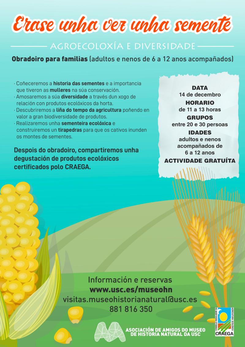 O Museo de Historia Natural da USC impulsa o obradoiro para familias ‘Érase unha vez unha semente: agroecoloxía e diversidade’ no que as familias intentarán identificar produtos de horta e relacionar as diferentes variedades. A actividade terá lugar a partir das 11.00 horas do sábado 14 de decembro.