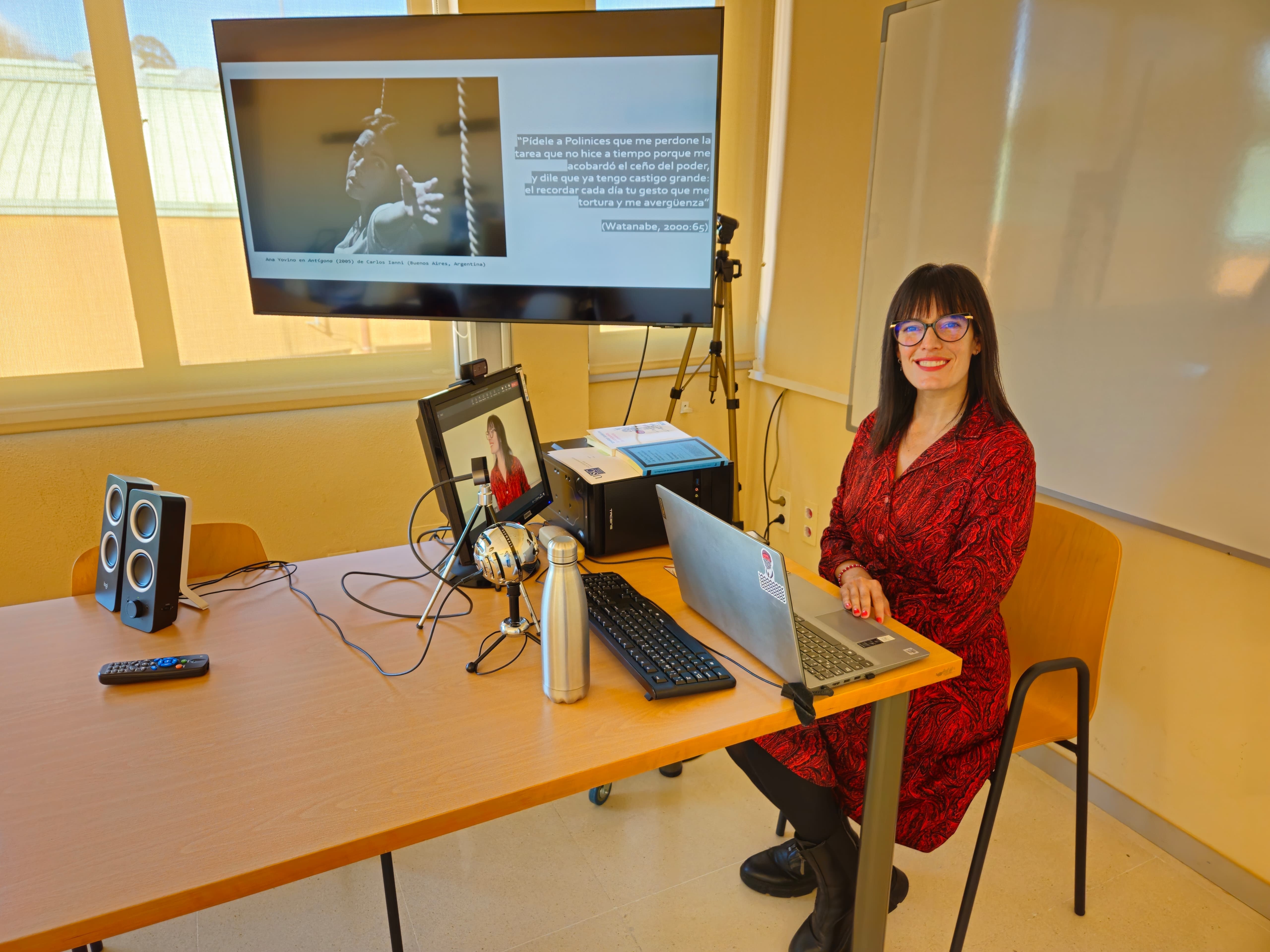 A investigadora dá conta na súa tese de doutoramento de como a historia de Latinoamérica e España está marcada por gobernos ditatoriais, violencias e exilios. Eses contextos provocaron a existencia “dunha vigorosa tradición” de persoas que se dedican á dramaturxia, colectivos teatrais e directores e directoras cunha forte identidade política. As versións de Antígona —filla do rei Edipo— latinoamericanas e españolas xa non viven en Tebas e a súa acción adoita situarse en coordenadas espazotemporais específicas. “Esa recontextualización resignifica o relato e transfórmao nunha mordaz denuncia da realidade política de cada país”, destaca.