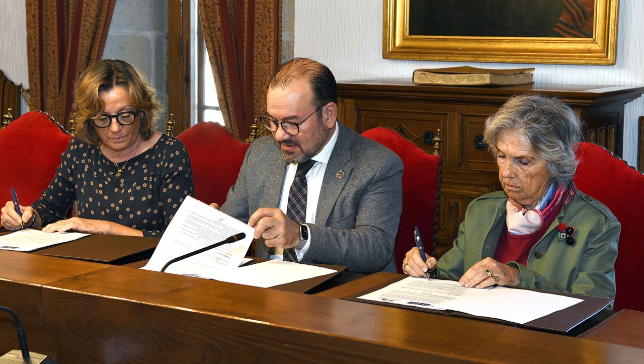 O reitor Antonio López e a presidenta da Fundación Renal Íñigo Álvarez de Toledo (FRIAT), Isabel Entero, acompañada pola súa directora xeral, Blanca Miranda, asinaron este luns, no Colexio san Xerome, o convenio de creación da Cátedra de Investigación Renal, orientada á promoción de actividades académicas e de investigación no ámbito da Insuficiencia Renal Crónica. A nova cátedra ten como obxectivos principais o fomento da investigación, así como a súa difusión, a organización de cursos, seminarios e actividades académicas de reflexión e debate, a formación de persoal investigador e a inserción profesional do estudantado da USC.