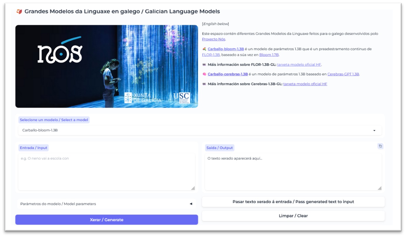 O Proxecto Nós, que desenvolven o Centro Singular de Investigación en Tecnoloxías Intelixentes (CiTIUS) e o Instituto da Lingua Galega (ILG), ambos os dous da USC, vén de anunciar a creación de Carballo, un modelo de linguaxe de grande escala de alta calidade en galego que permitirá a creación de novas ferramentas e aplicacións de IA xerativa para a lingua propia de Galicia.